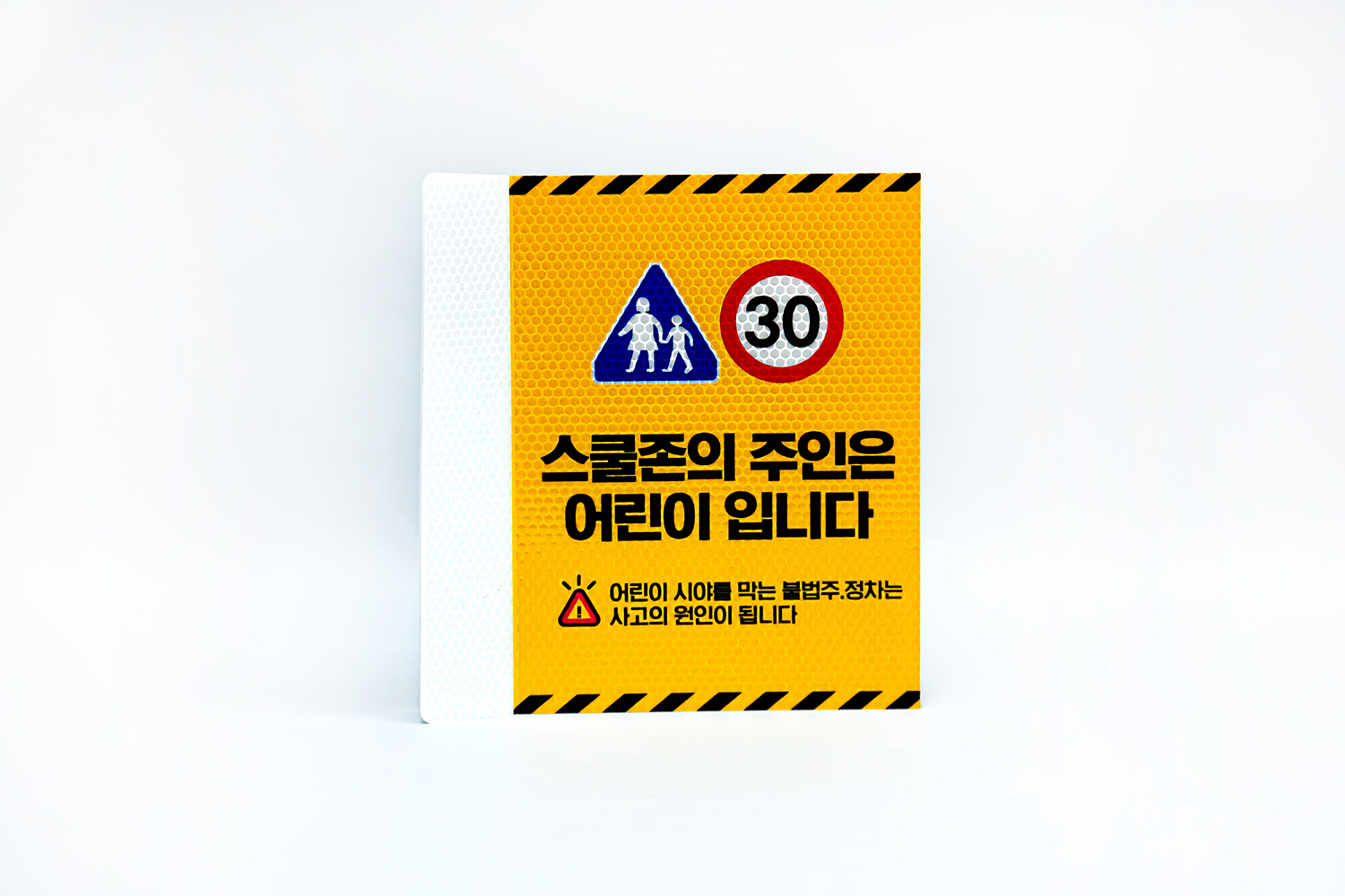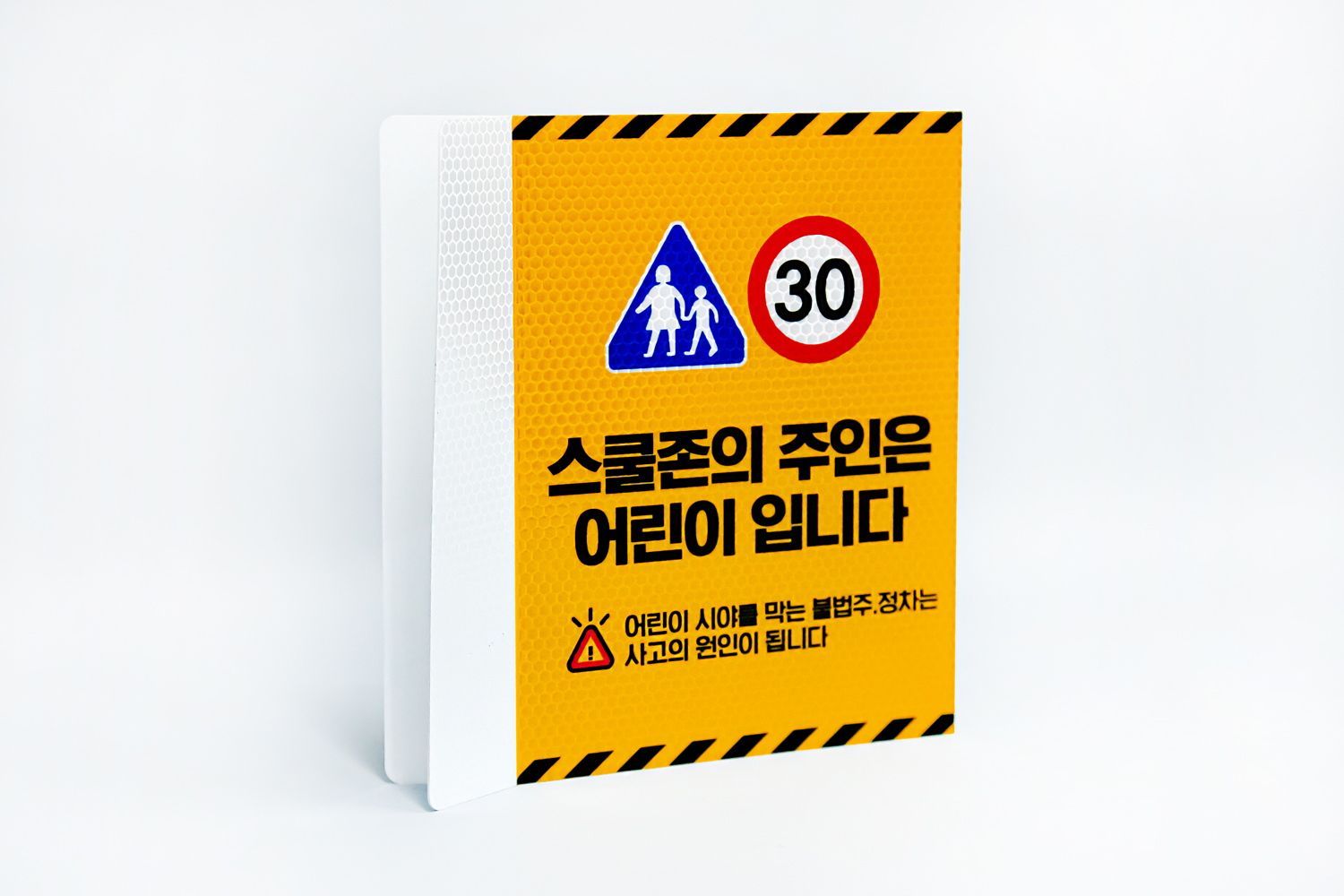 눈에 잘띄는 돌출형 안내판으로 학교 앞의 보호 펜스 등에 부착하여 사용할 수 있는 안내판인데요!