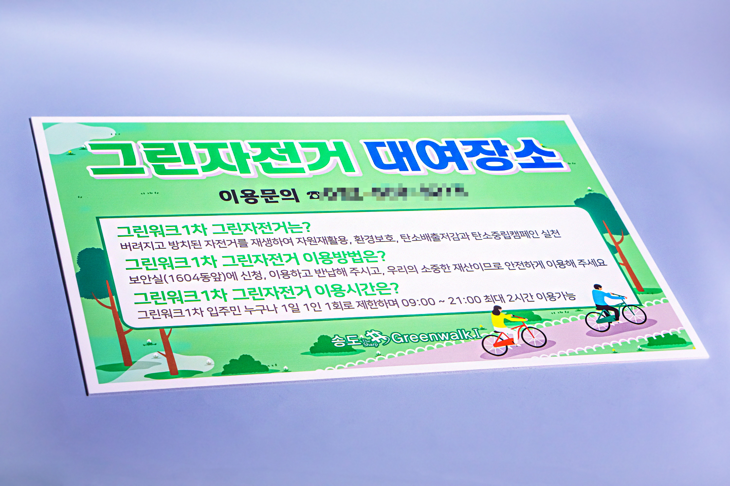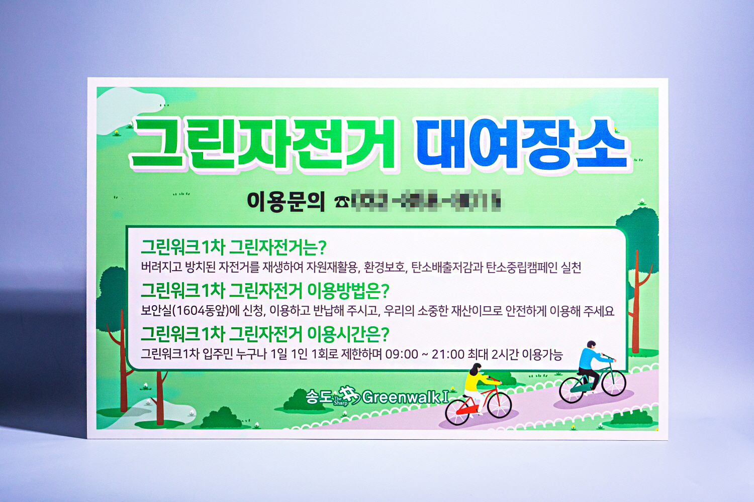 다음은 송도더샵그린워크1차에서 주문해 주신 그린자전거 대여장소 안내판입니다!