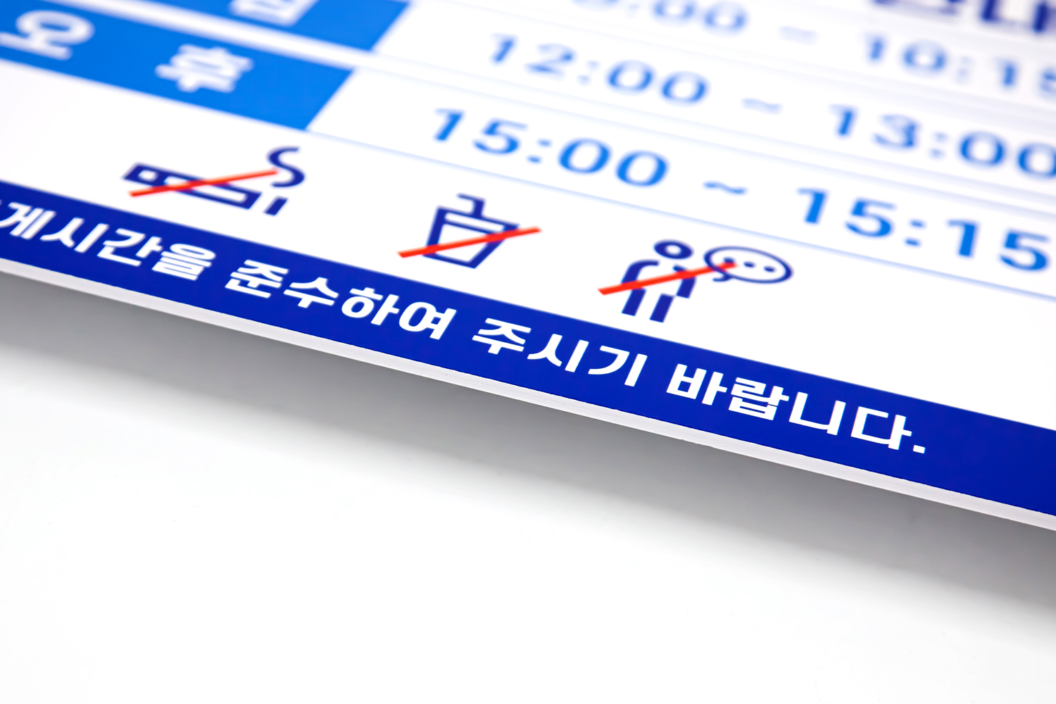 깔끔한 디자인과 선명한 색상의 안내판으로