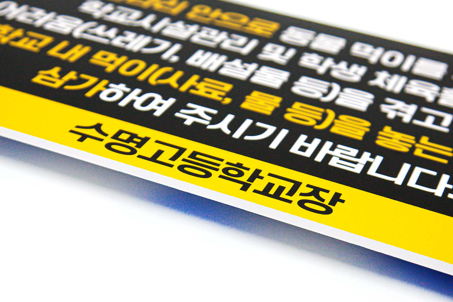 다음은 수명고등학교에서 주문해 주신 안내판입니다!