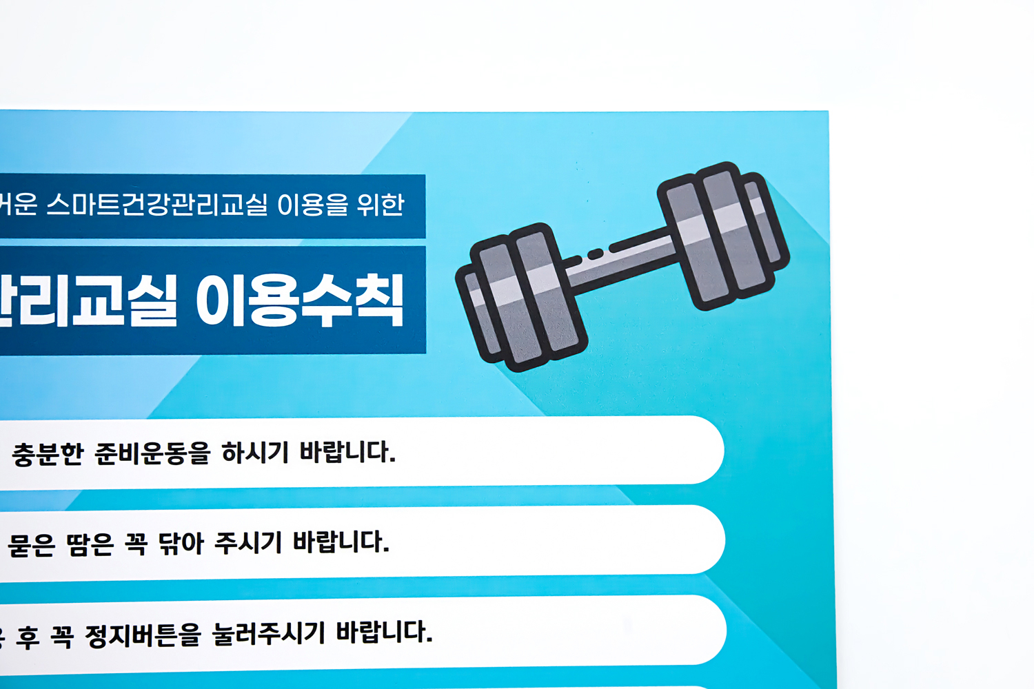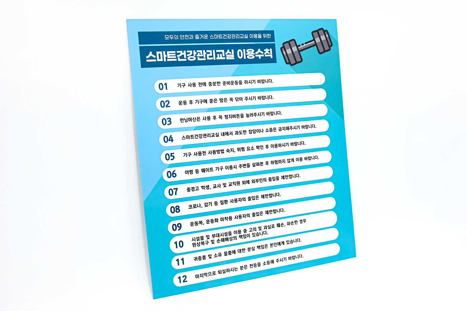 주로 헬스장에 쓰이는 안내판으로 포맥스로 제작하여 가볍고 설치가 매우 쉬워