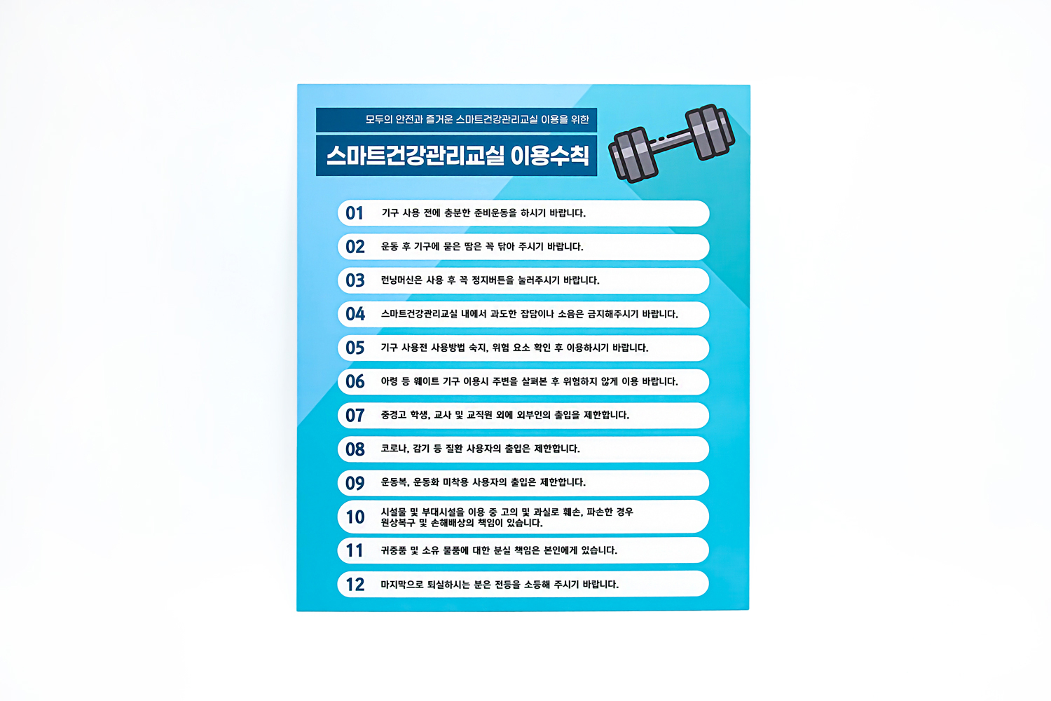 다음은 중경고등학교에서 주문해 주신 이용수칙 안내판입니다!