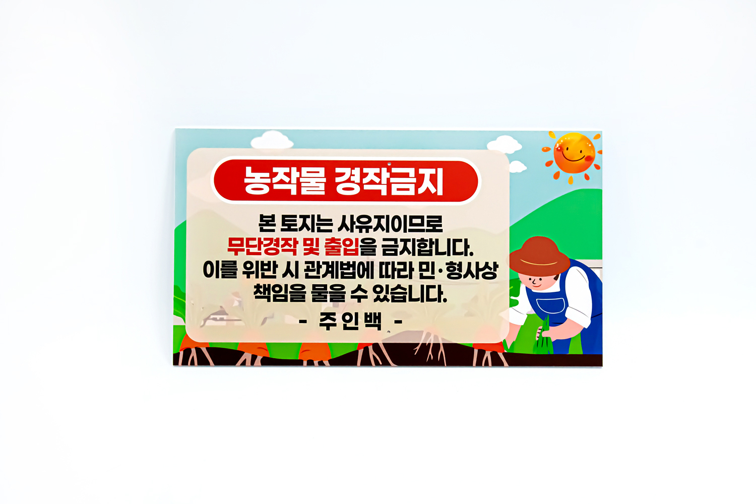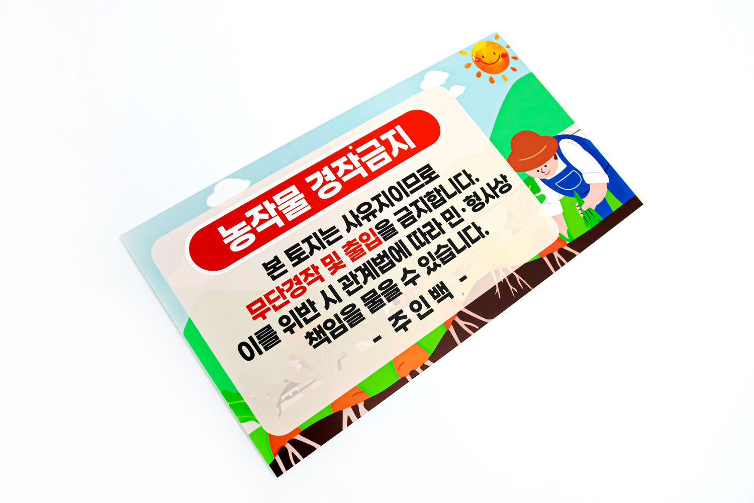 농작물이 심어지기 전에 토지 주인이 안내판을 설치할 경우 경고를 무시하고 농작물을 심으면