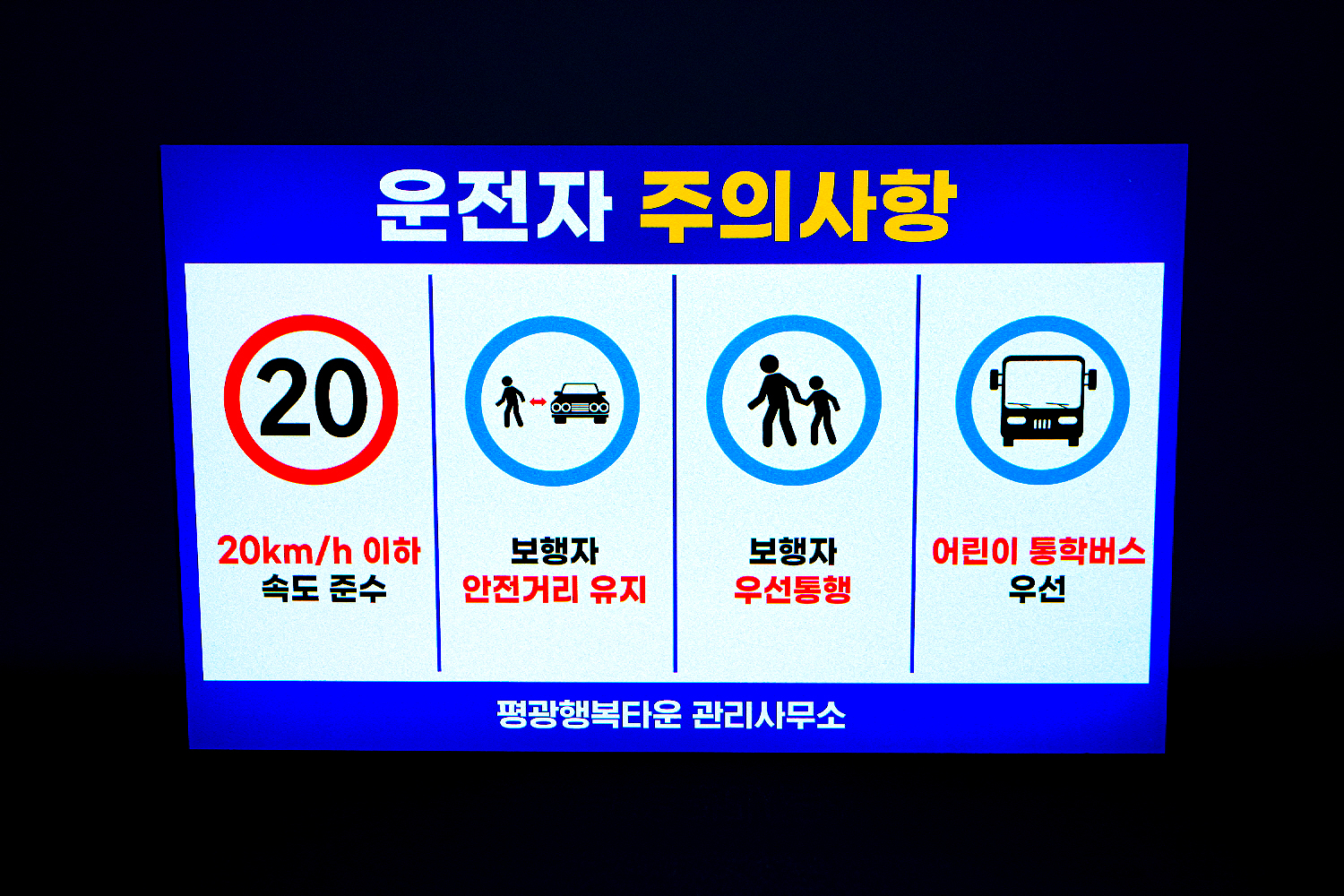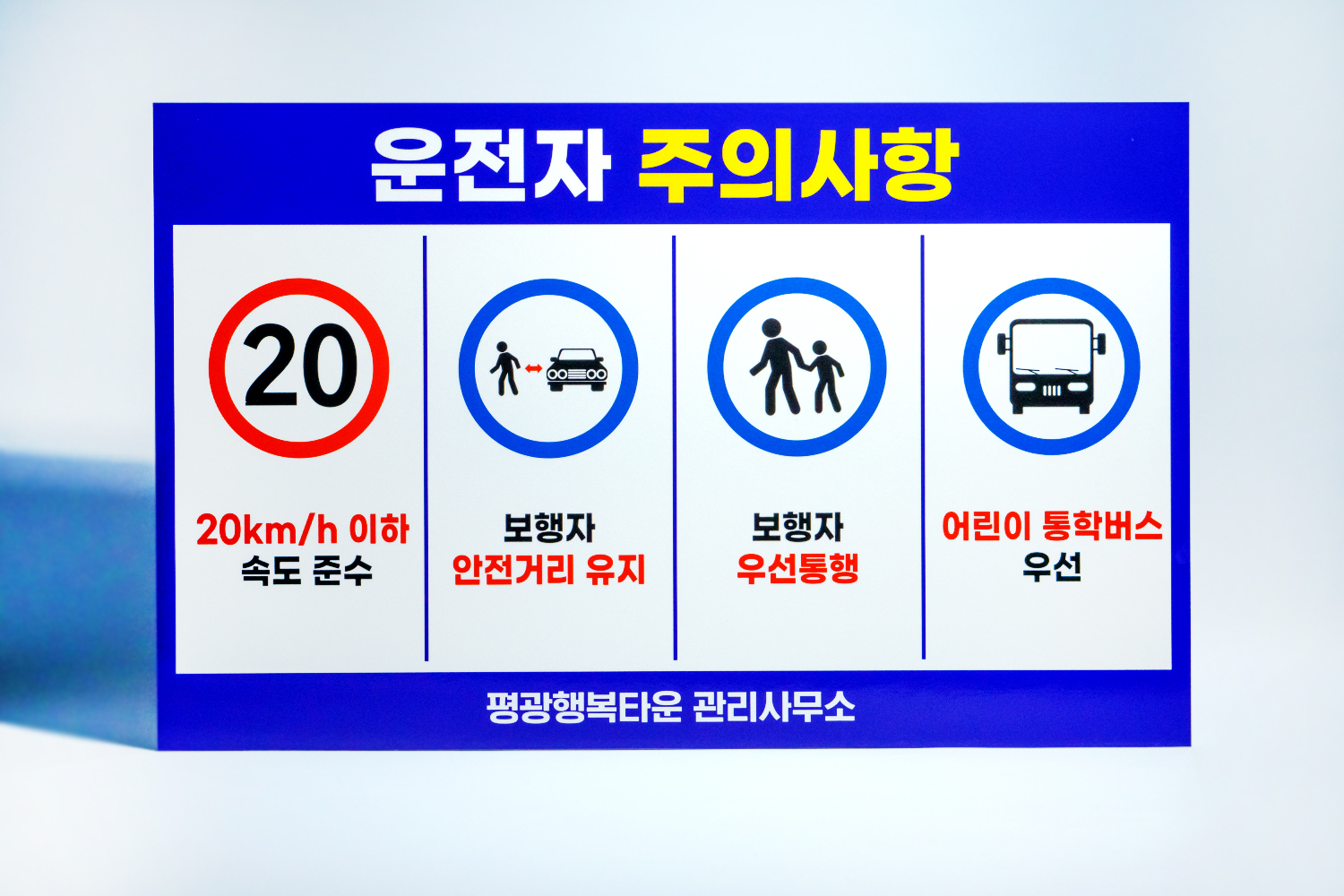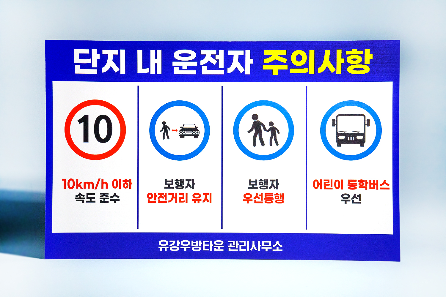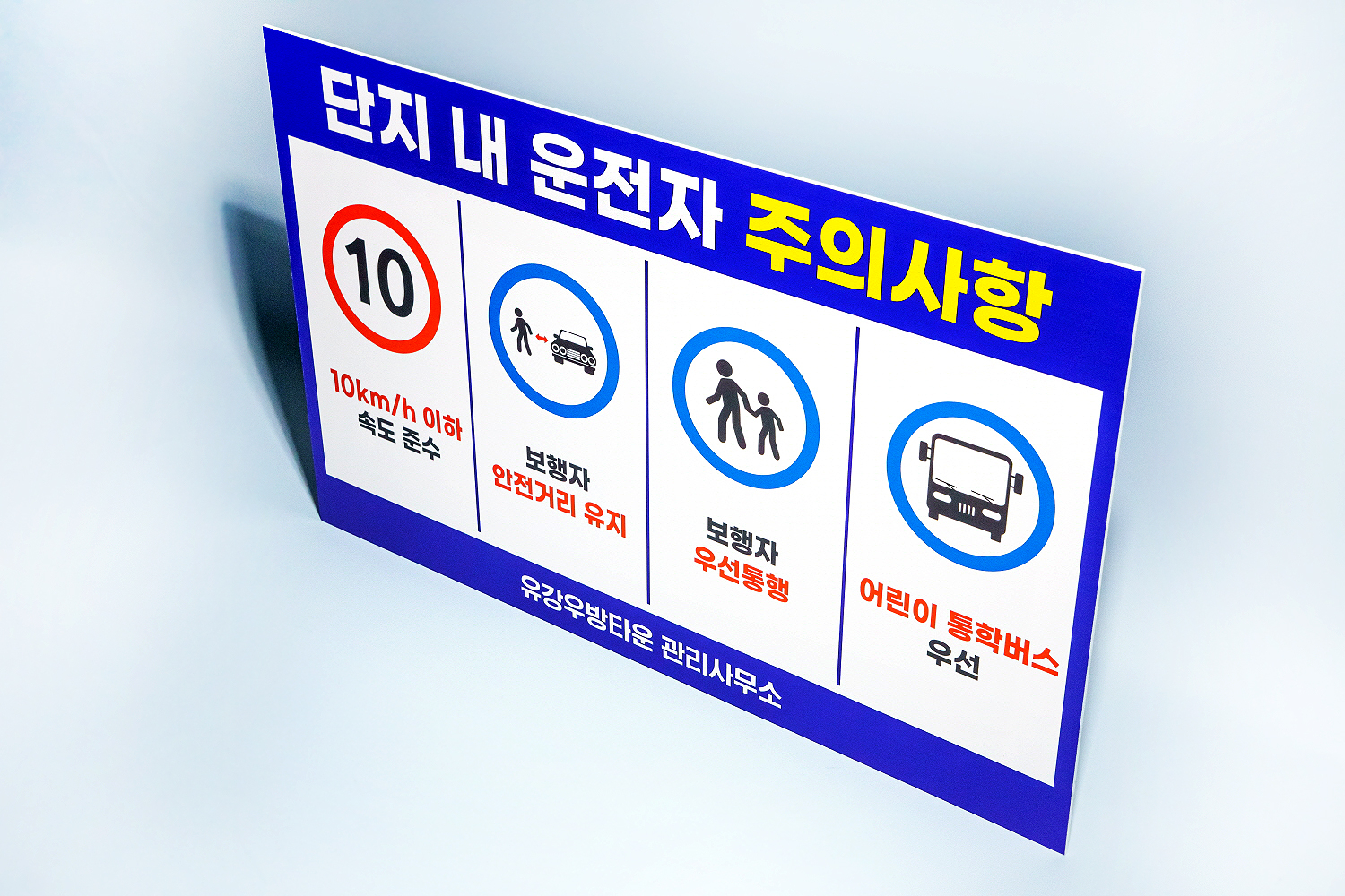 먼저 유강우방타운에서 주문해주신 단지 내 운전자 주의사항 안내판입니다!