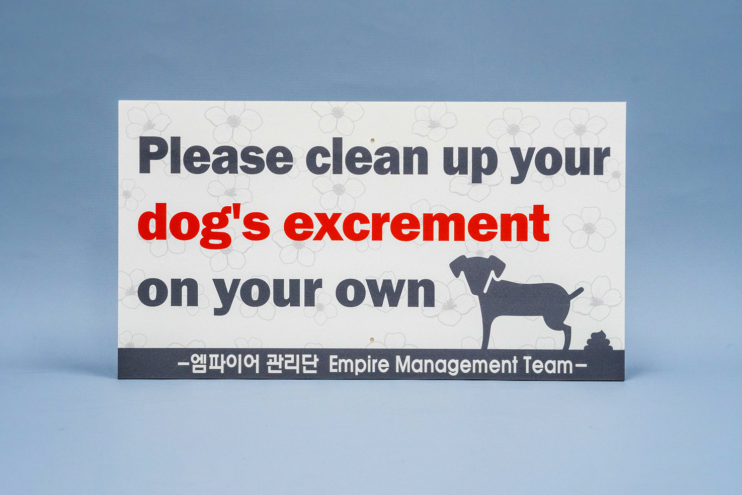 다음은 반려동물 배변 관련 영문 안내판입니다!