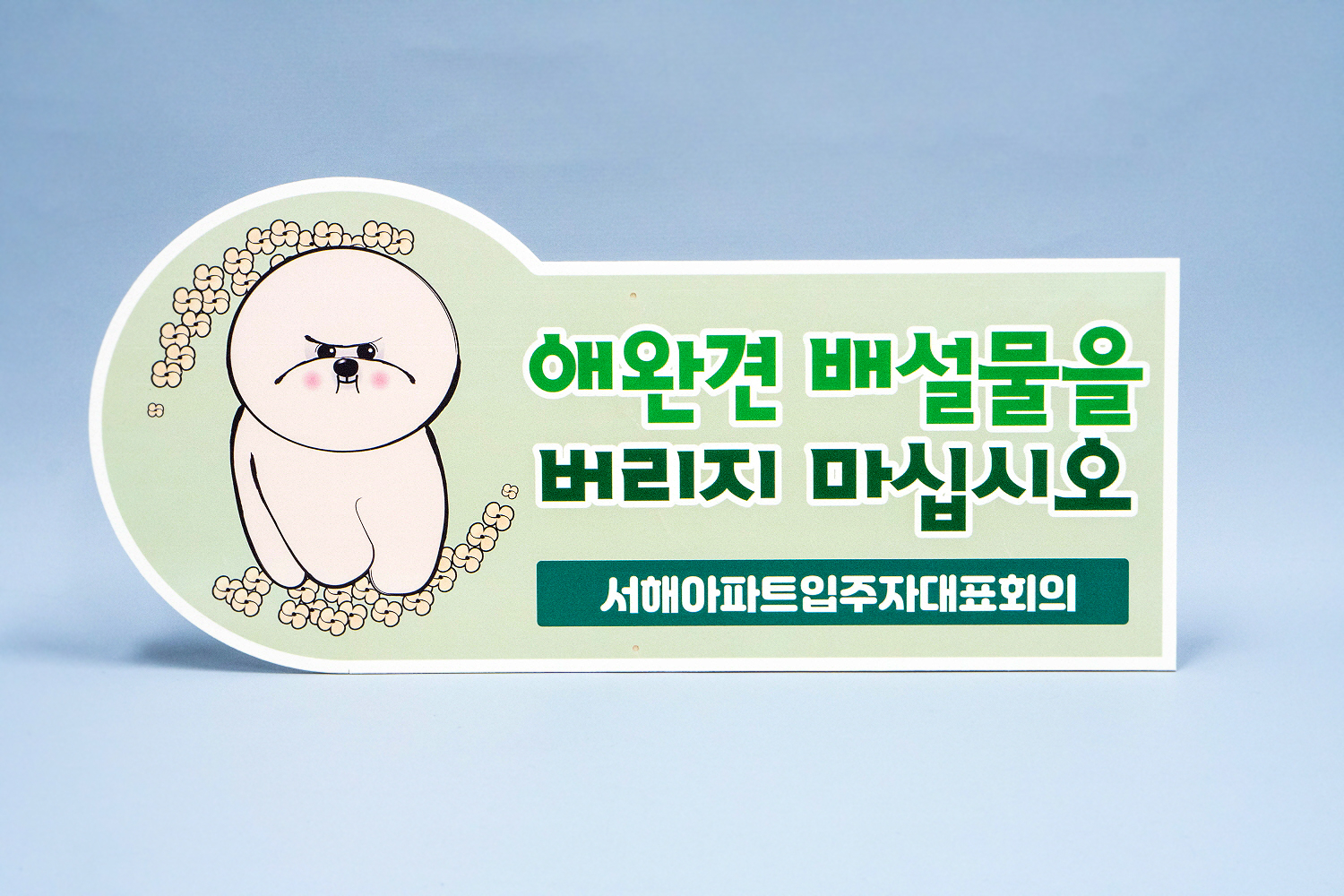 반려견의 배설물은 알아서 치워 달라는 내용의 안내판으로