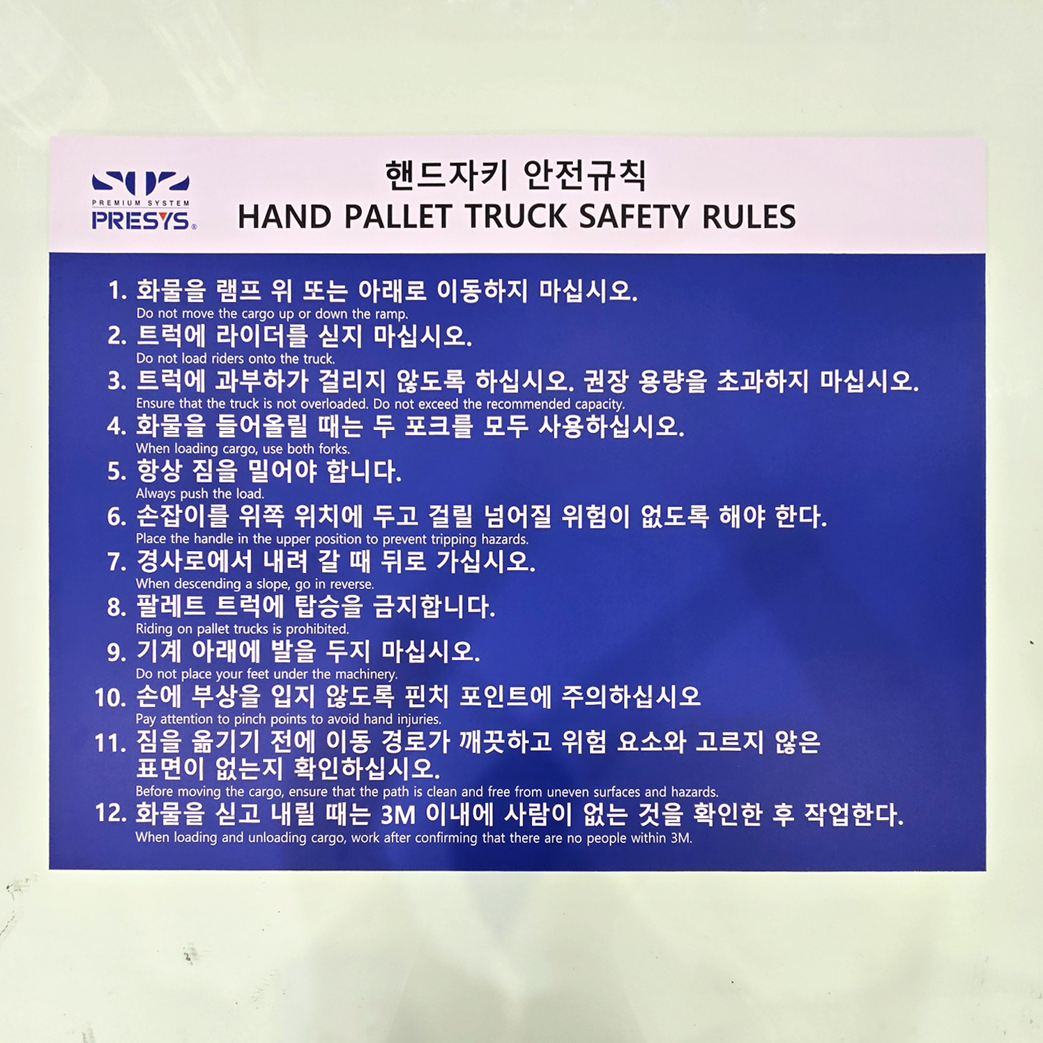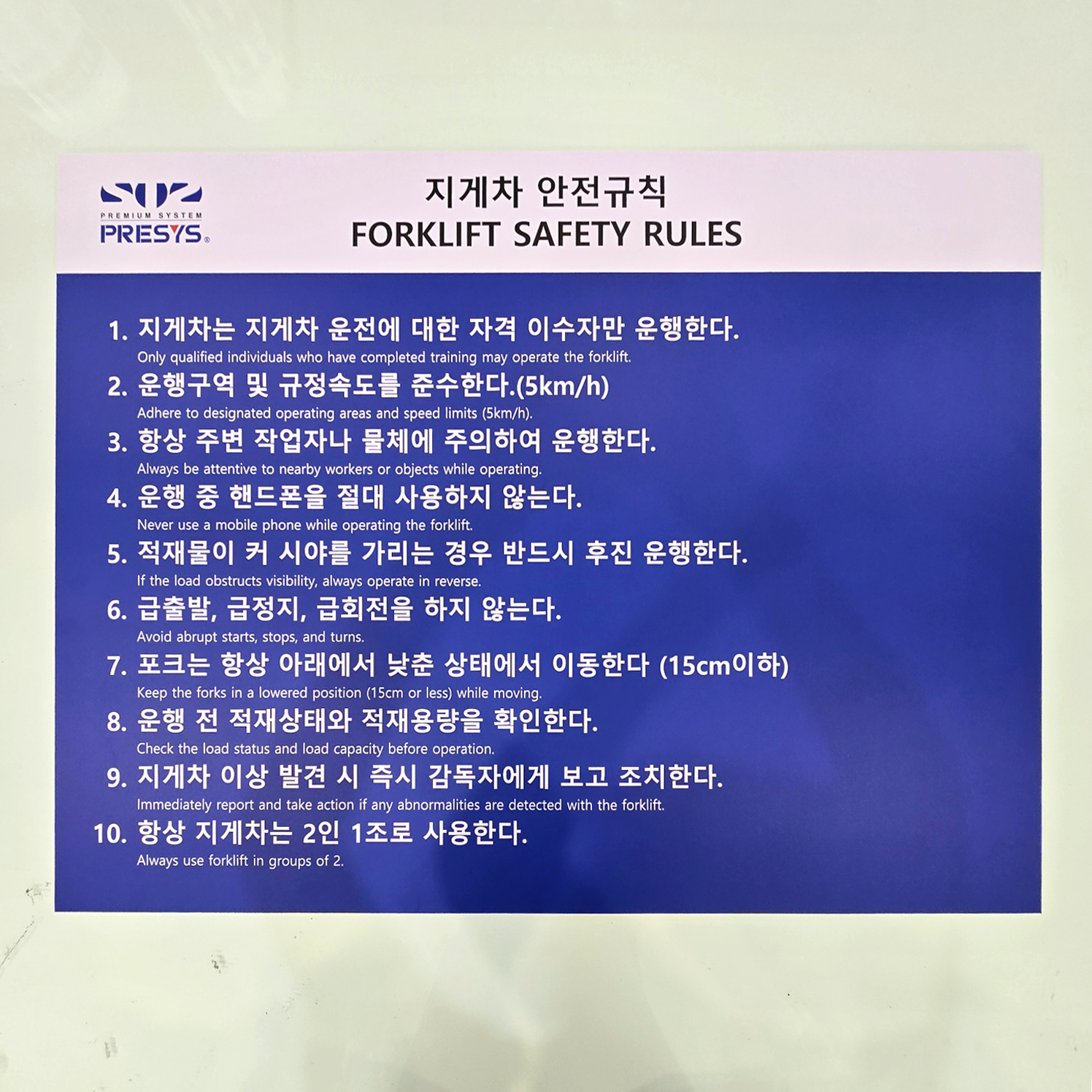 마지막 지게차 안전규칙 안내판입니다