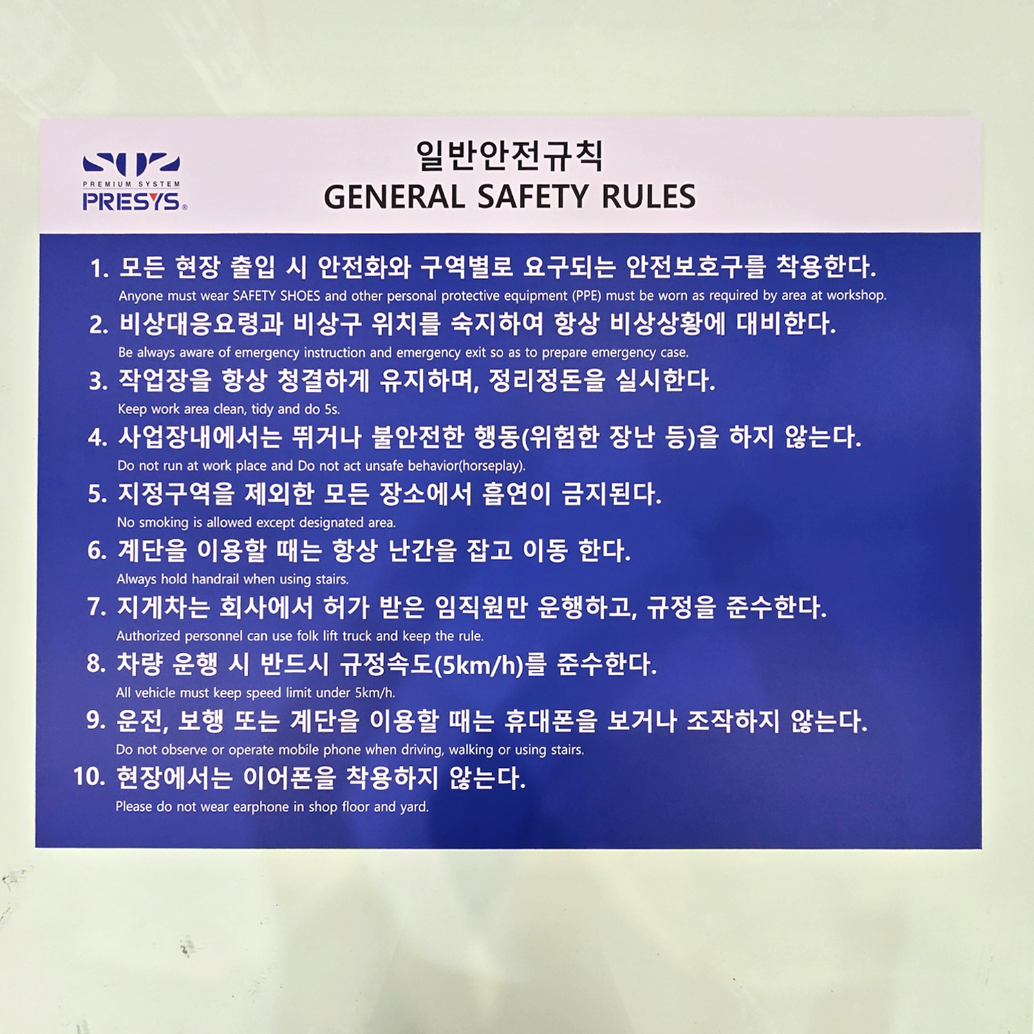 일반안전규칙 안내판입니다