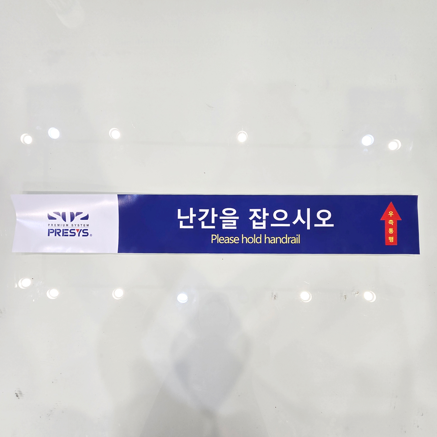 우측통행 표시와 함께 계단이용시