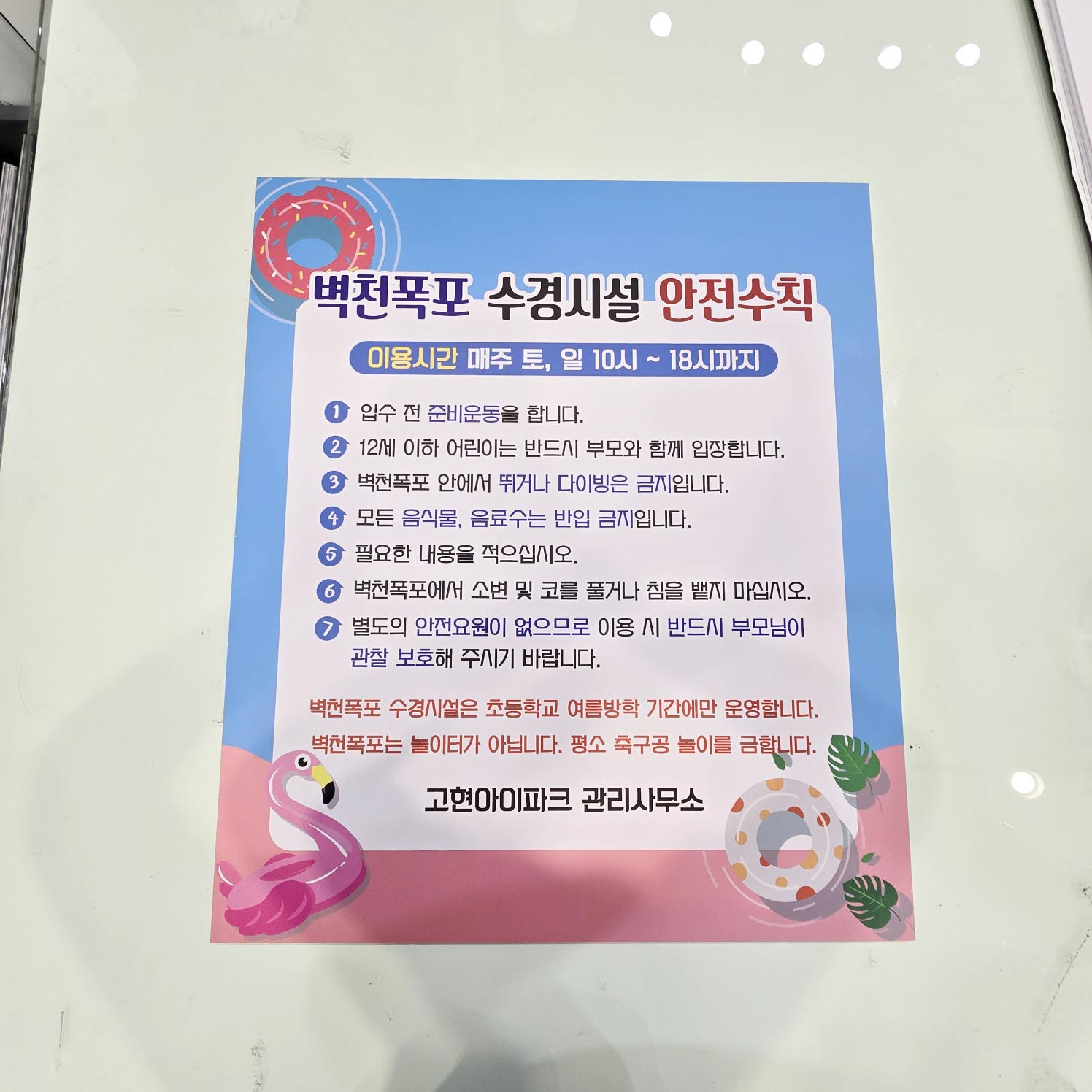 주문해 주신 수경시설 안전수칙 표시판 입니다