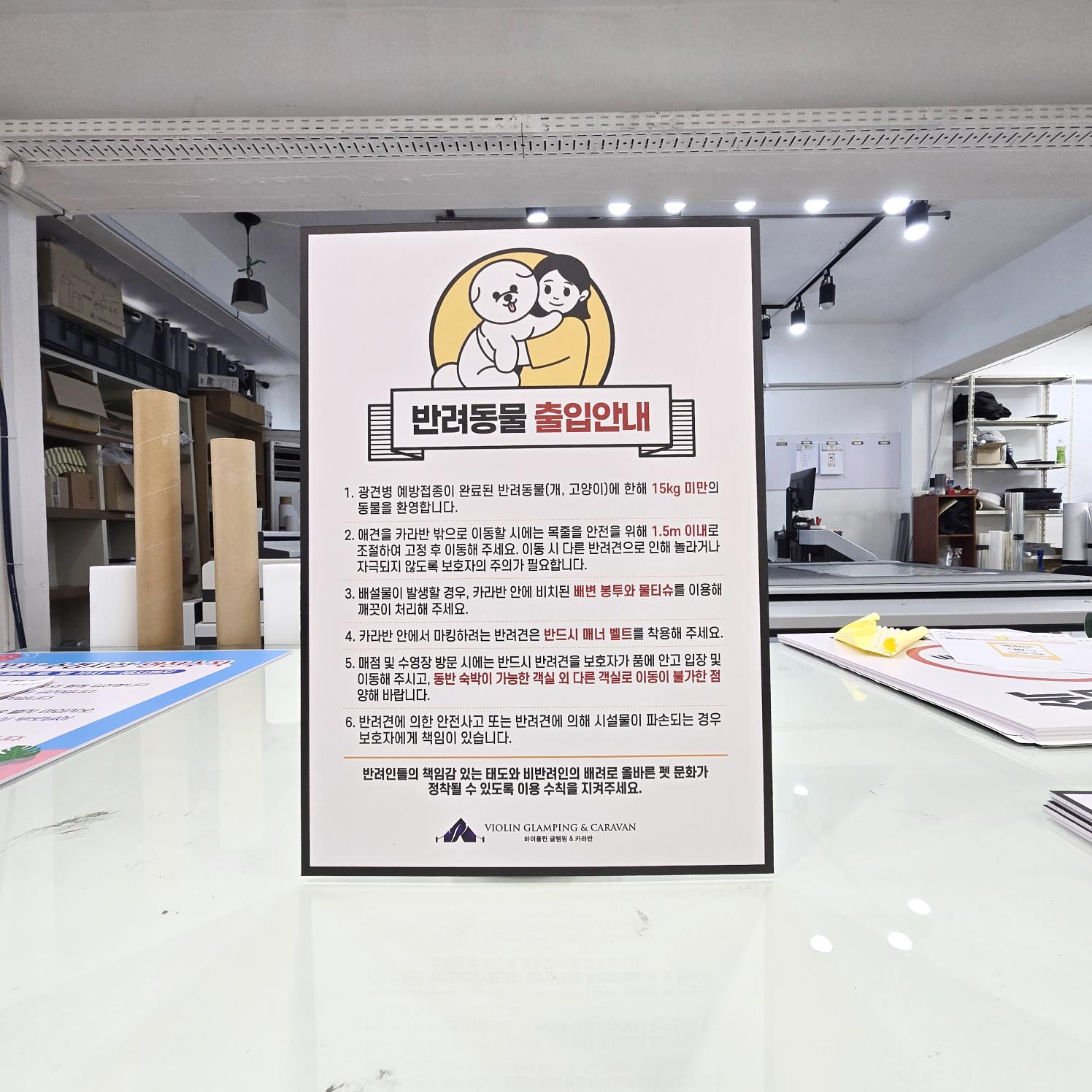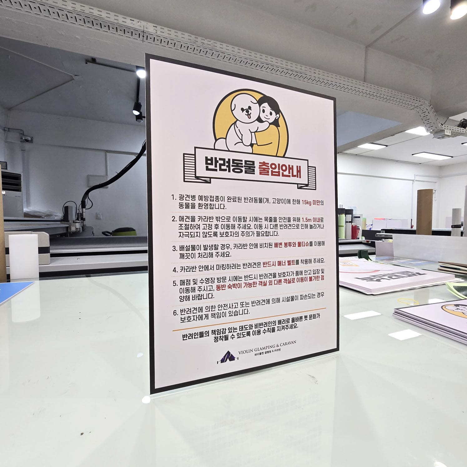 주문해 주신 반려동물 출입안내 표시판 입니다