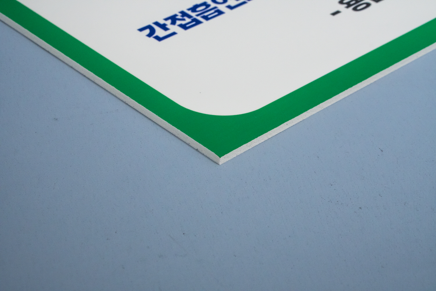 가볍고 단단하며 자외선으로 노출변형이 적고 UV인쇄 시 3년 이상 발색이 유지됩니다.