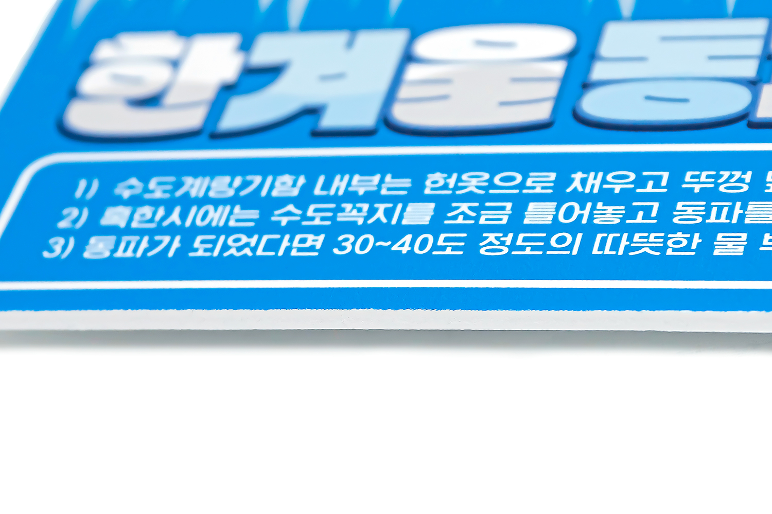 동파주의 안내판은 포맥스 타입 단일재질로 가볍고 단단하며,