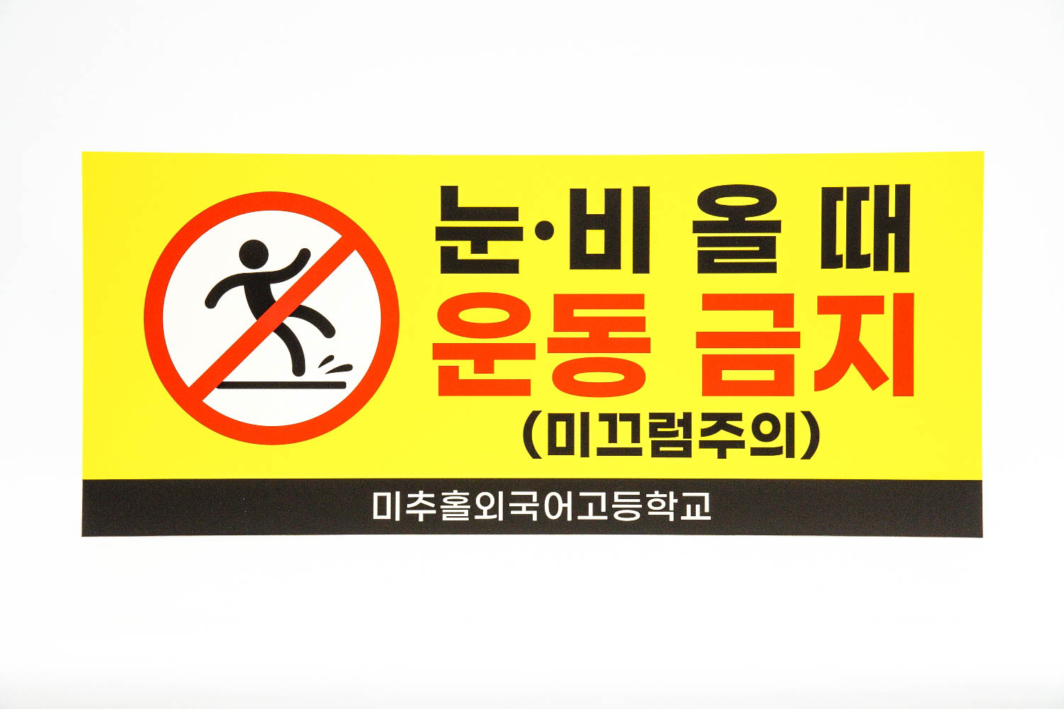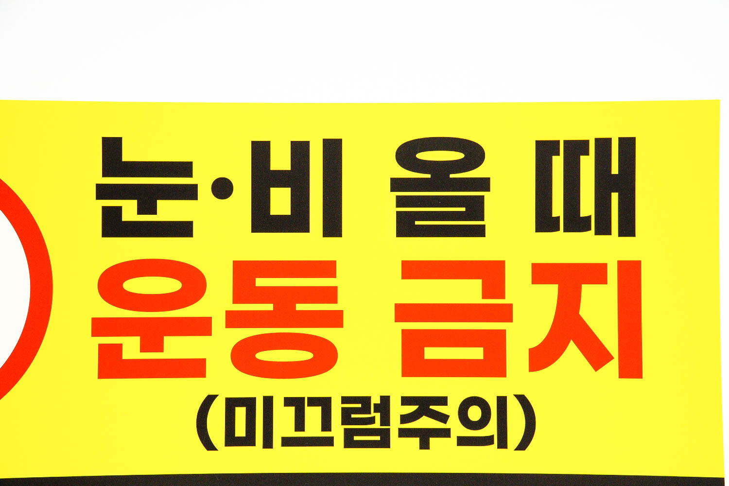 주문해 주신 눈·비 올 때 운동금지 미끄럼주의 안내판입니다.