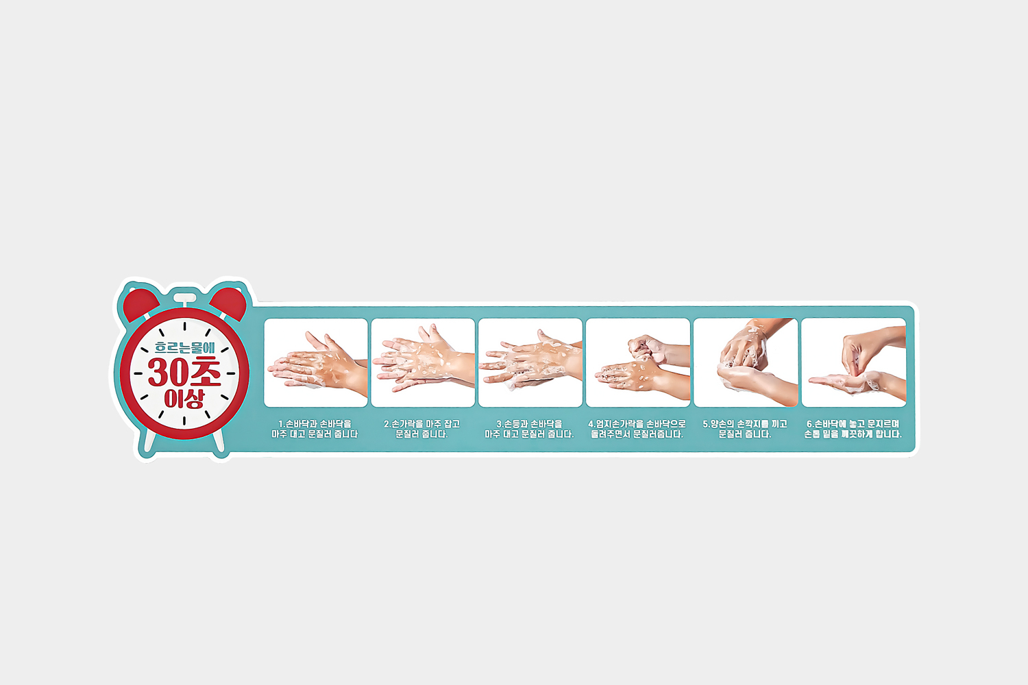 개인 위생을 위해 손 씻기 순서와 시간 등을 쉽게 알리기 위해 제작된 안내판으로