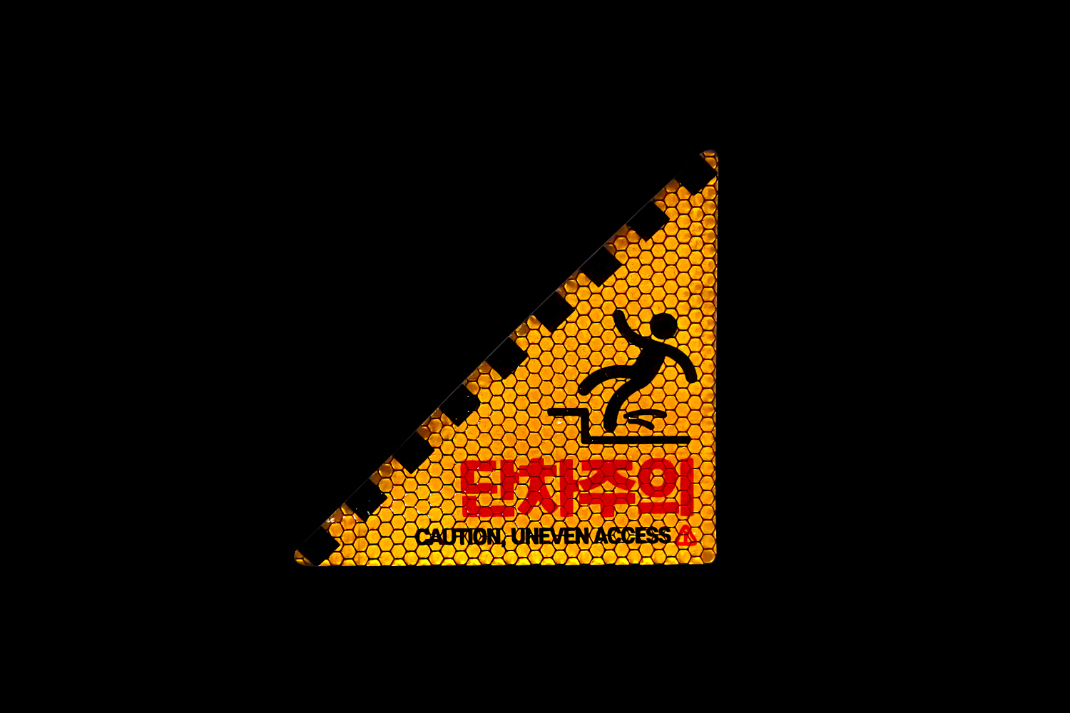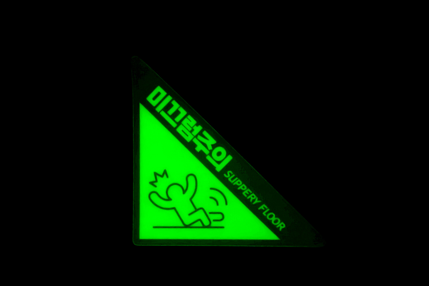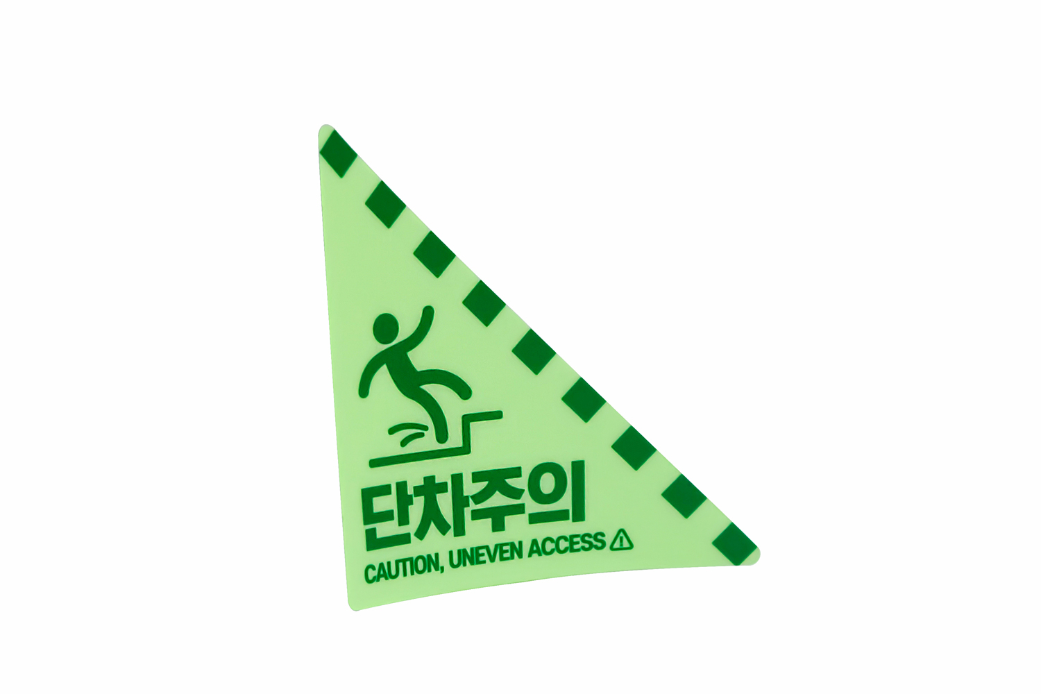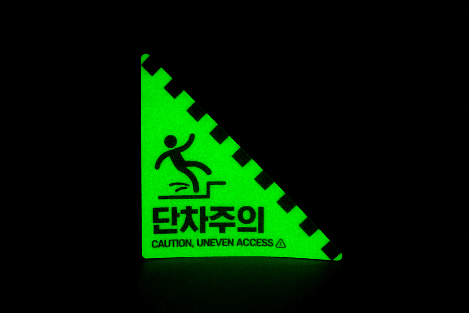 단차 주의 스티커 또한 축광 타입의 스티커로 제작되어
