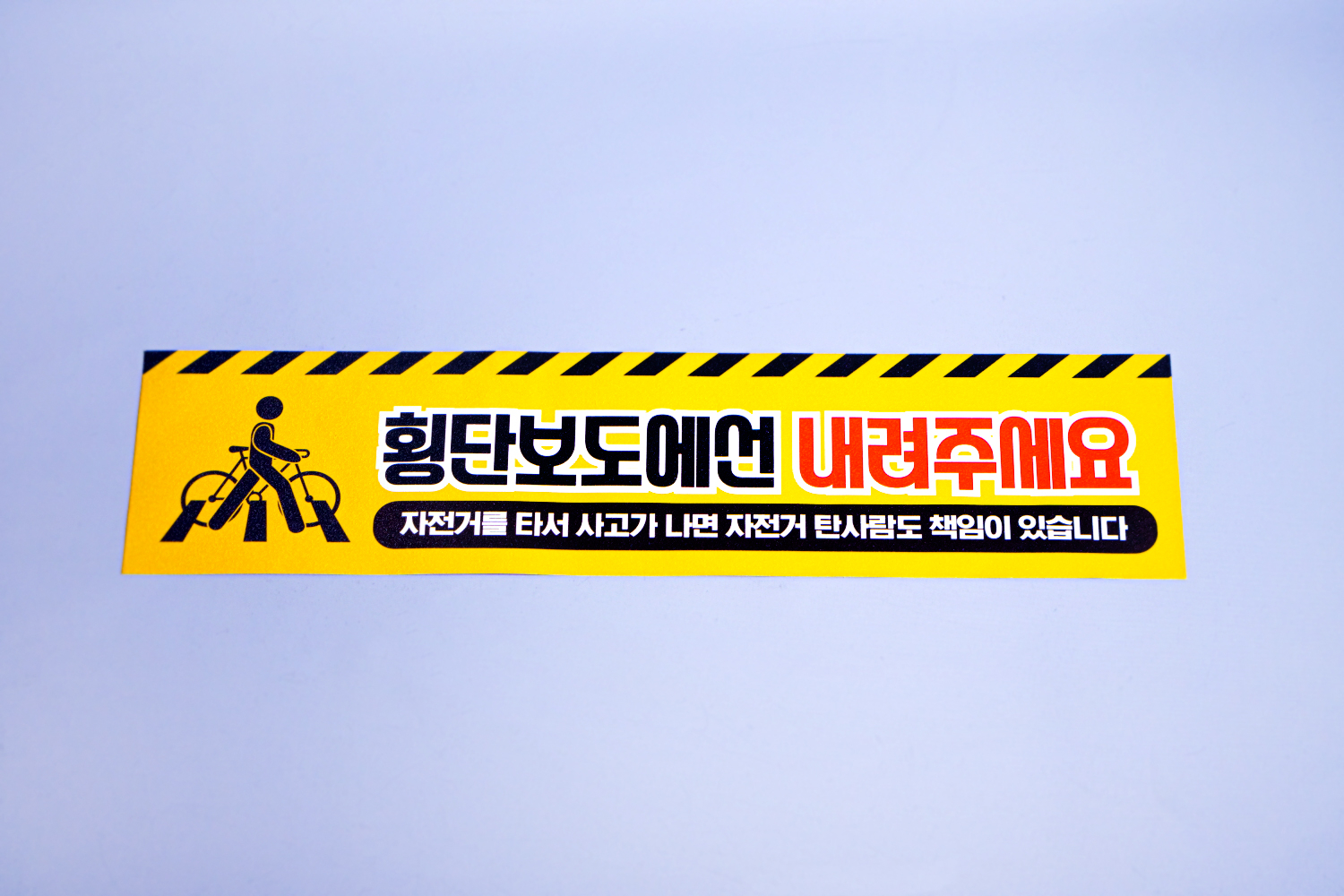 선명하고 뚜렷하여 보행자, 자전거 운전자 모두 스티커의 내용을 금방 확인할 수 있습니다!