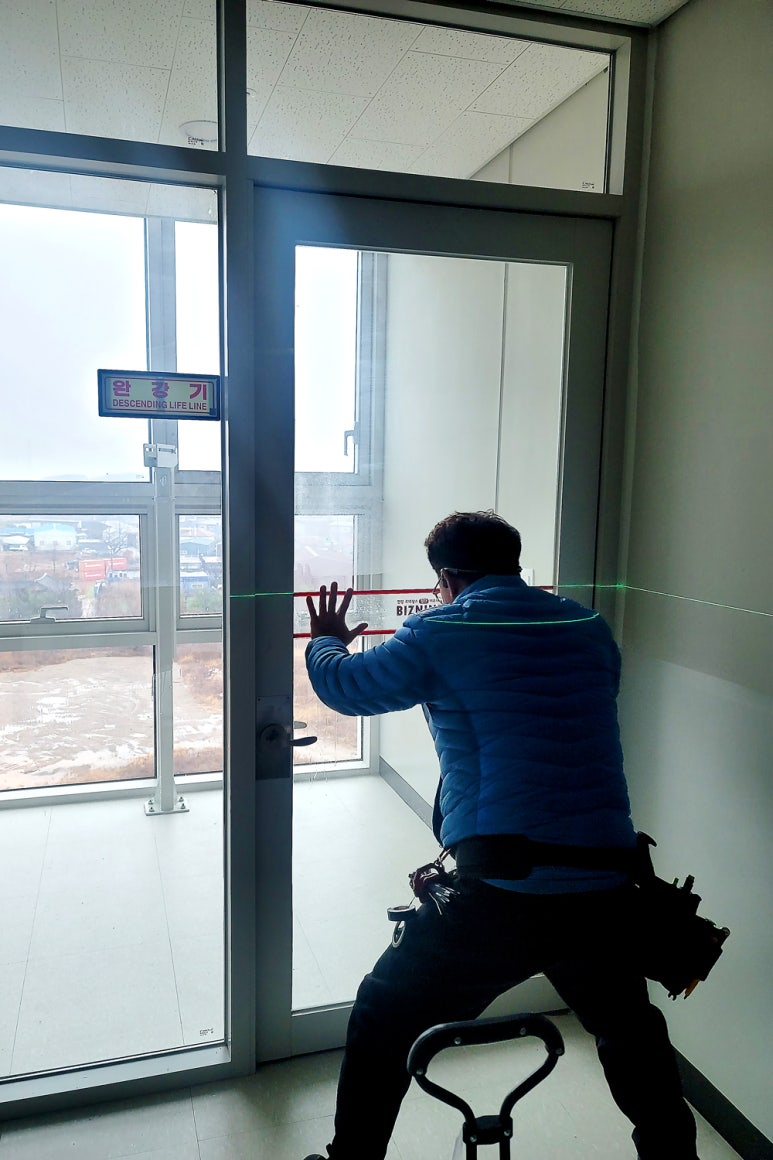 레이저 레벨기를 이용하여 통일성있는 시공을 진행하는데요!