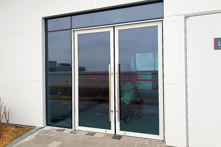 출입문 그래픽 시공 시 그래픽 시트가 부착되는 위치를 동일하게 하기 위해