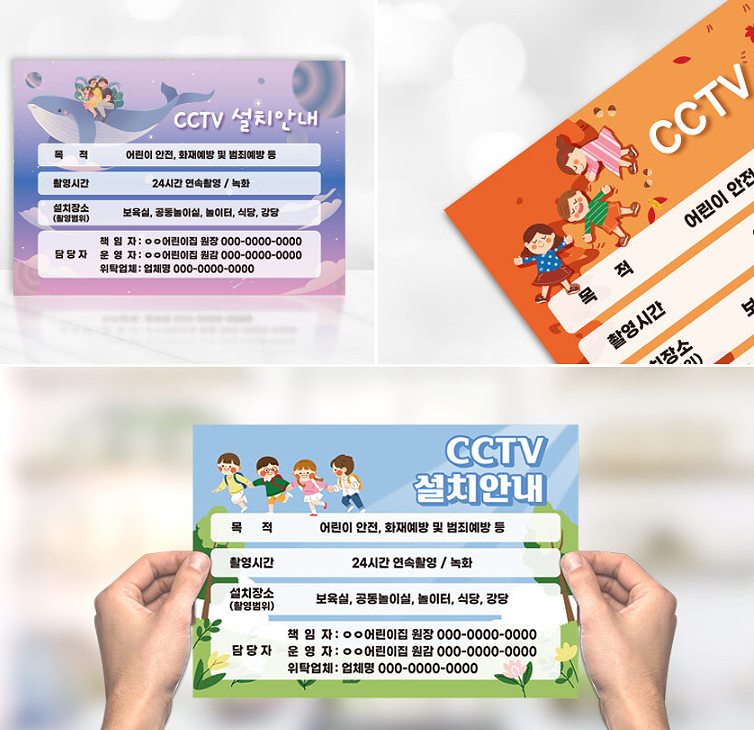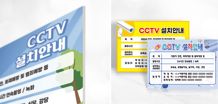 어린이집 CCTV 녹화중 촬영중 설치안내문 설치안내판 제작 사례입니다 !
