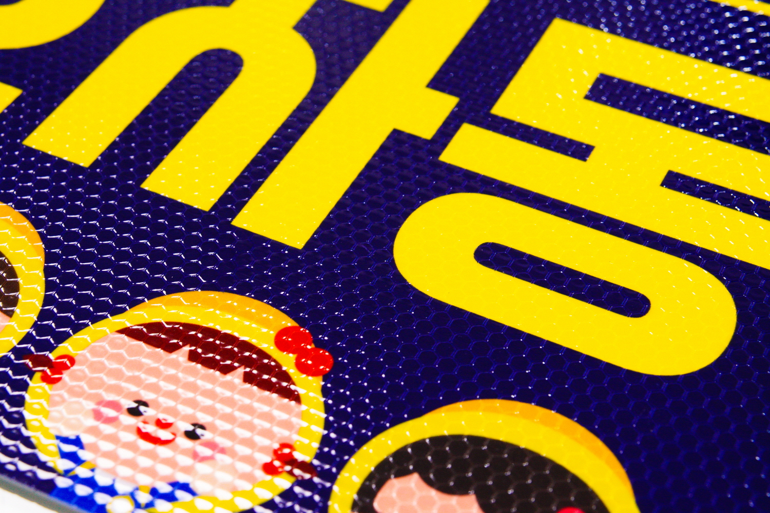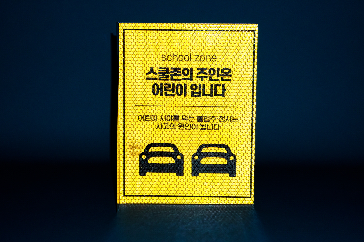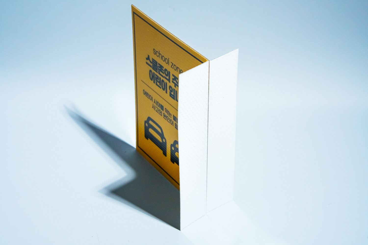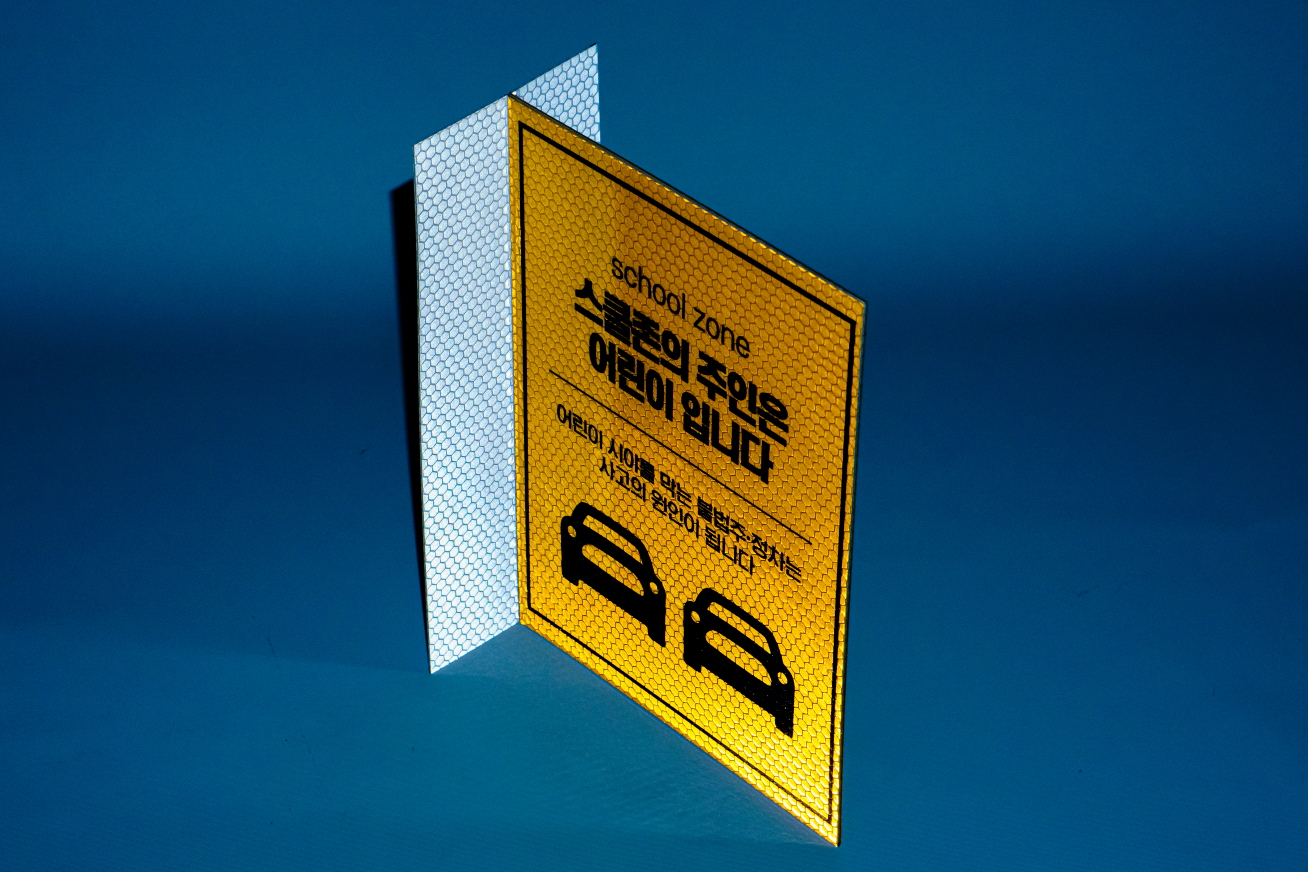 반사지 타입은 도로표지판에 사용되는 고휘도 반사시트를 사용하여 시안성이 우수한 타입 으로