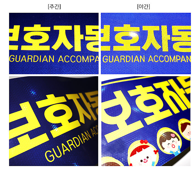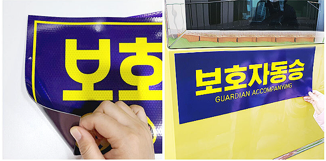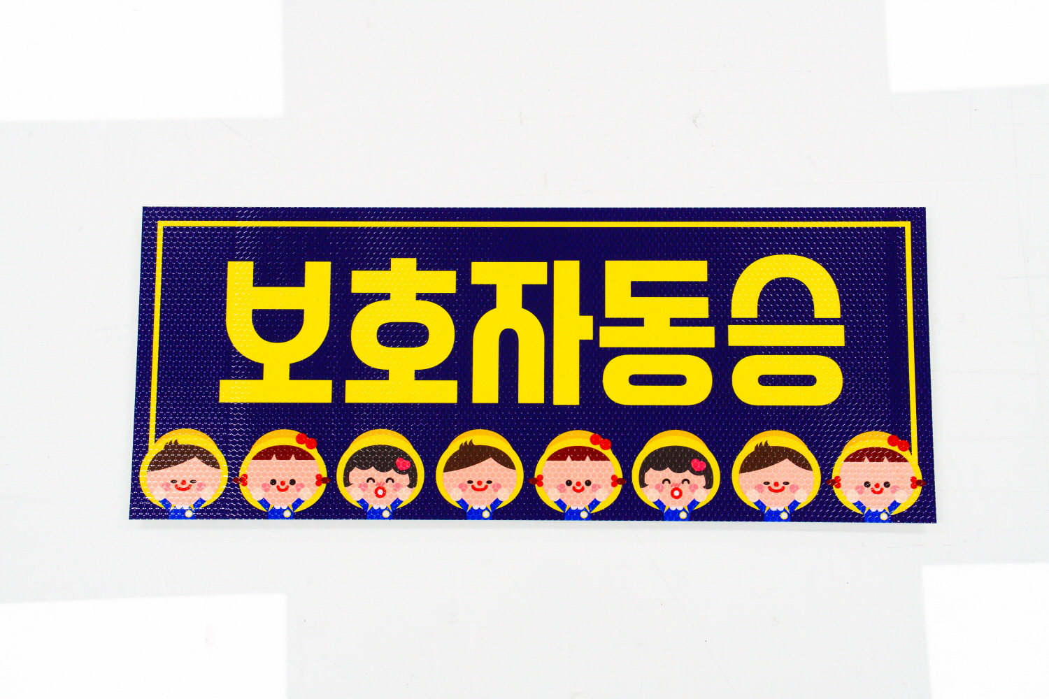 먼저 , 보호자동승표지 반사지 자석스티커 타입 입니다 !