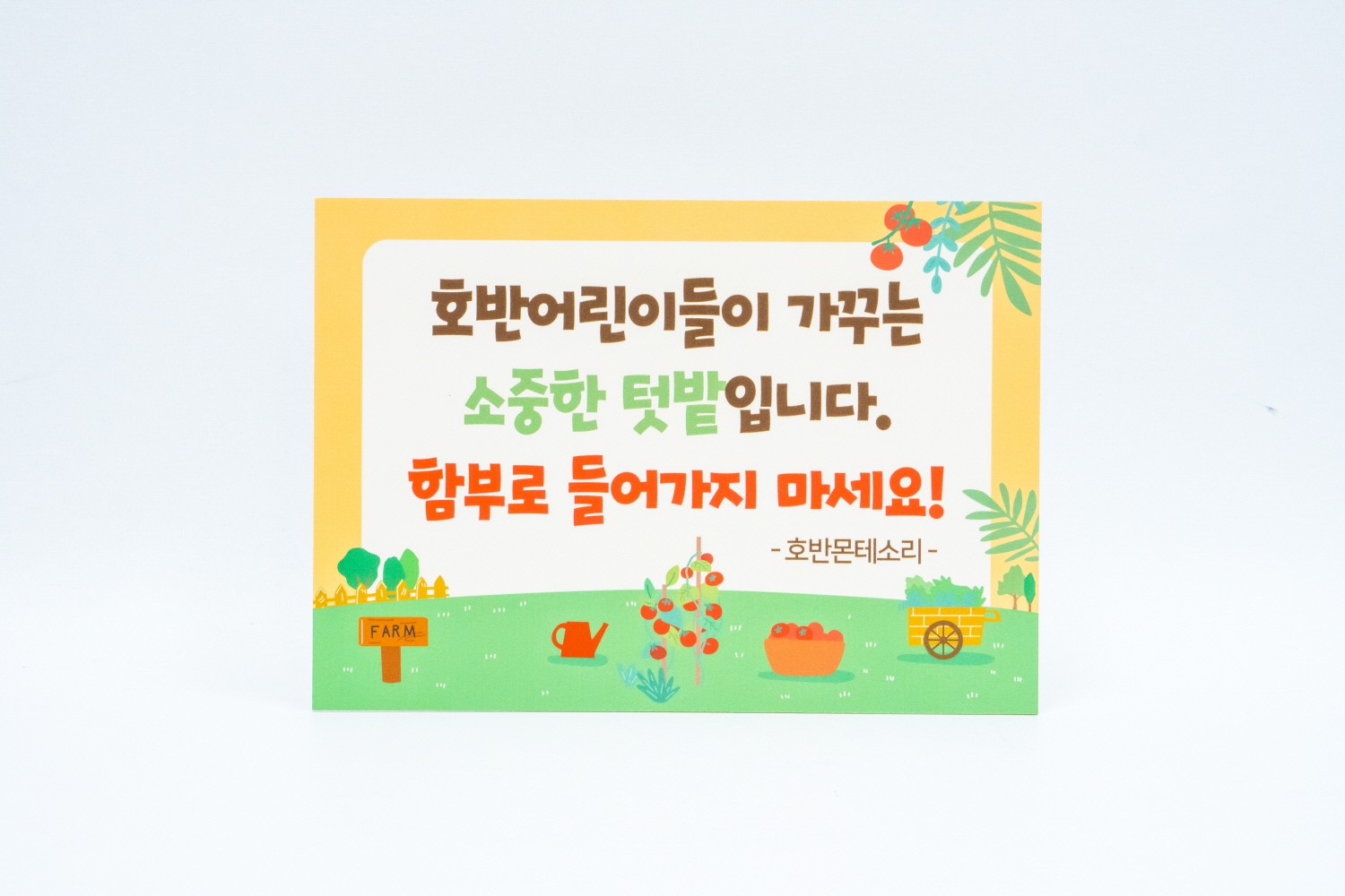 어린이집 내 텃밭을 보호하기 위해 부착하는 안내판 타입이에요 ~~