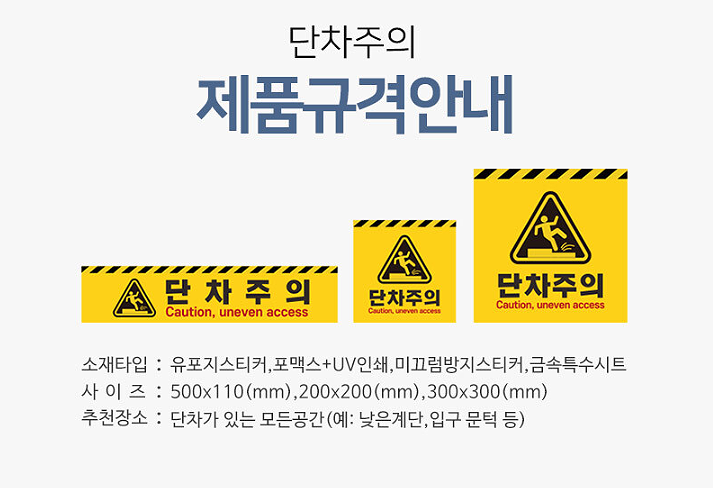 위처럼 단차주의 안내판 타입은 보여드린 직사각형 타입 뿐만 아니라