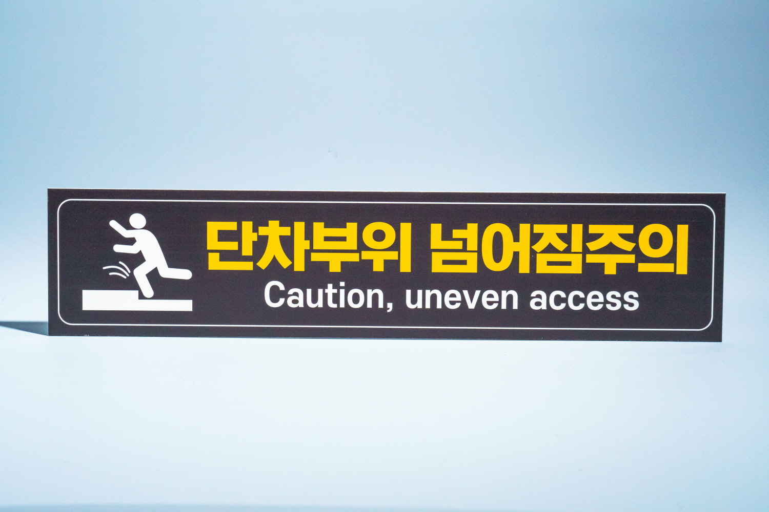 단차주의 표지판은 단차가 있는 낮은 계단 , 입구 문턱 등에 설치하여 단차의 위험을