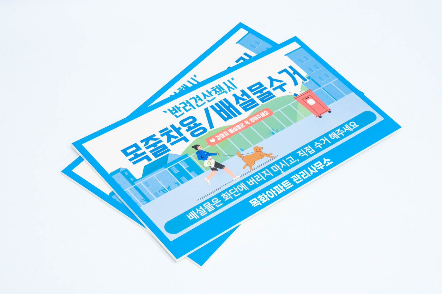 반려견 목줄착용과 배설물 수거 관련하여 안내하는 표지판 이에요 !