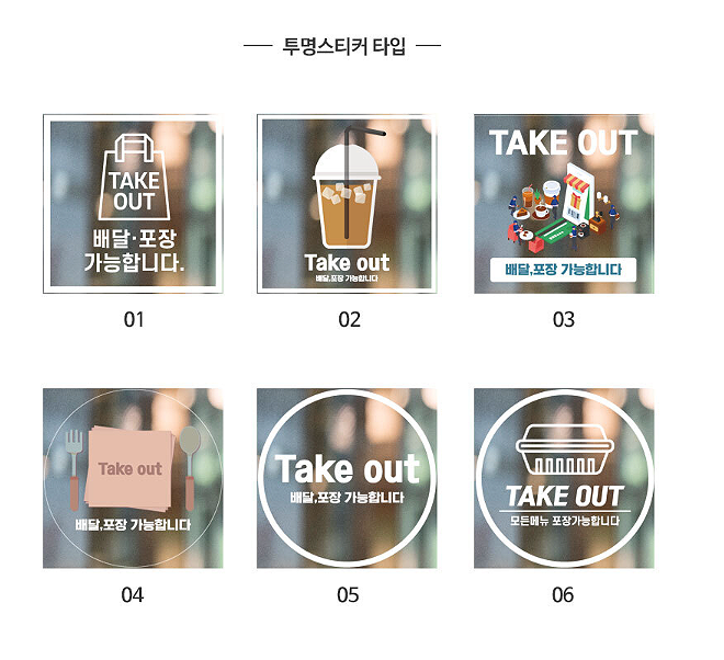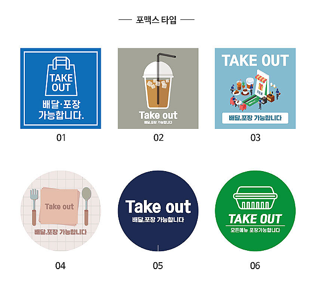테이크아웃 배달 포장 가능을 알릴 수 있는 안내판 타입이에요 ~~