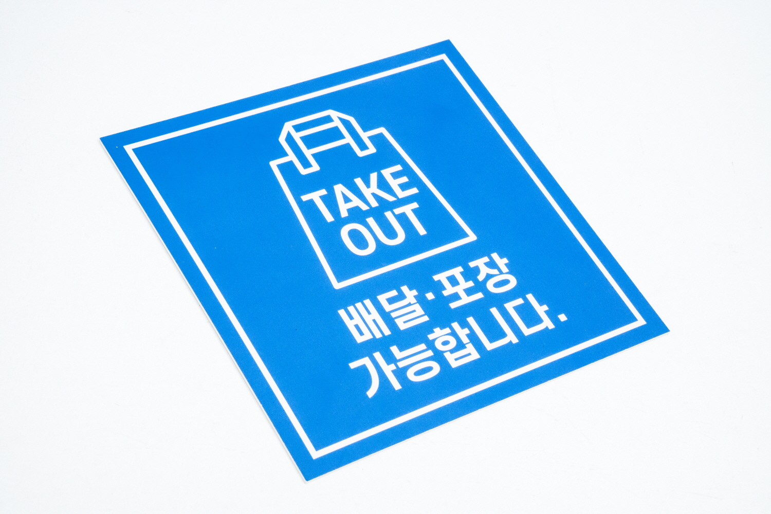 식당 , 카페에 테이크아웃 배달가능 포장가능 표지판 부착으로