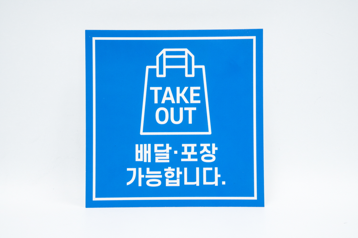 테이크아웃 배달 포장 가능 안내판 표지판 타입 입니다 !