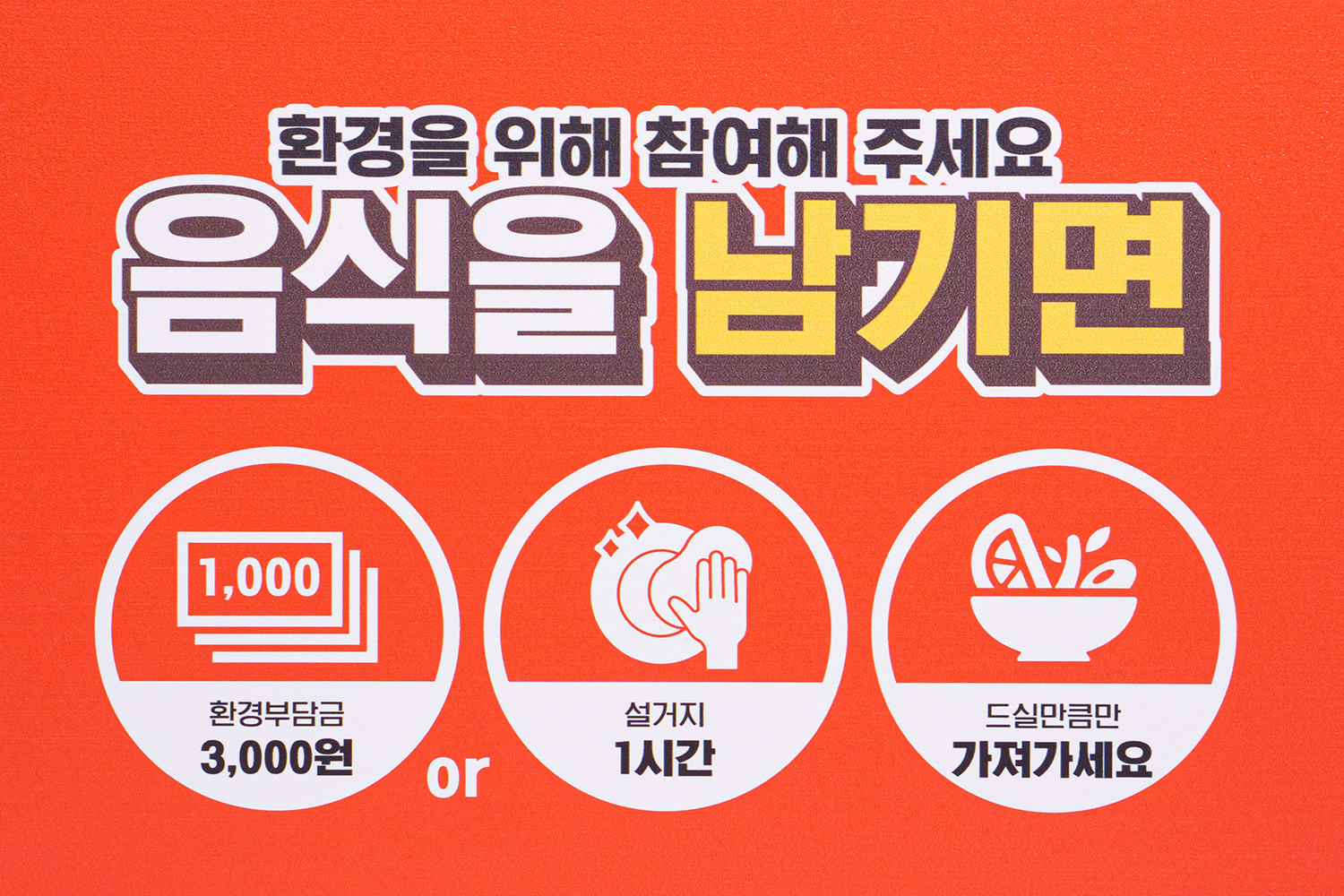 위 환경부담금 안내 표지판 부착으로 환경을 지킬 뿐만 아니라 음식 관련 경고를 알릴 수 있어요 !!