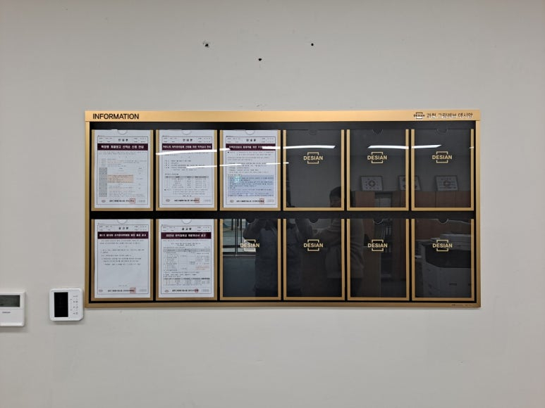 벽면에 주문해 주신 슬림 디자인 게시판을 시공하였읃 때의 모습입니다