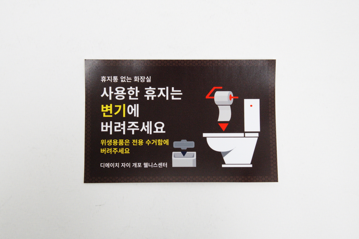 사용한 휴지 변기에 버려주세요 안내 표지 스티커 타입 제작 사례입니다 !