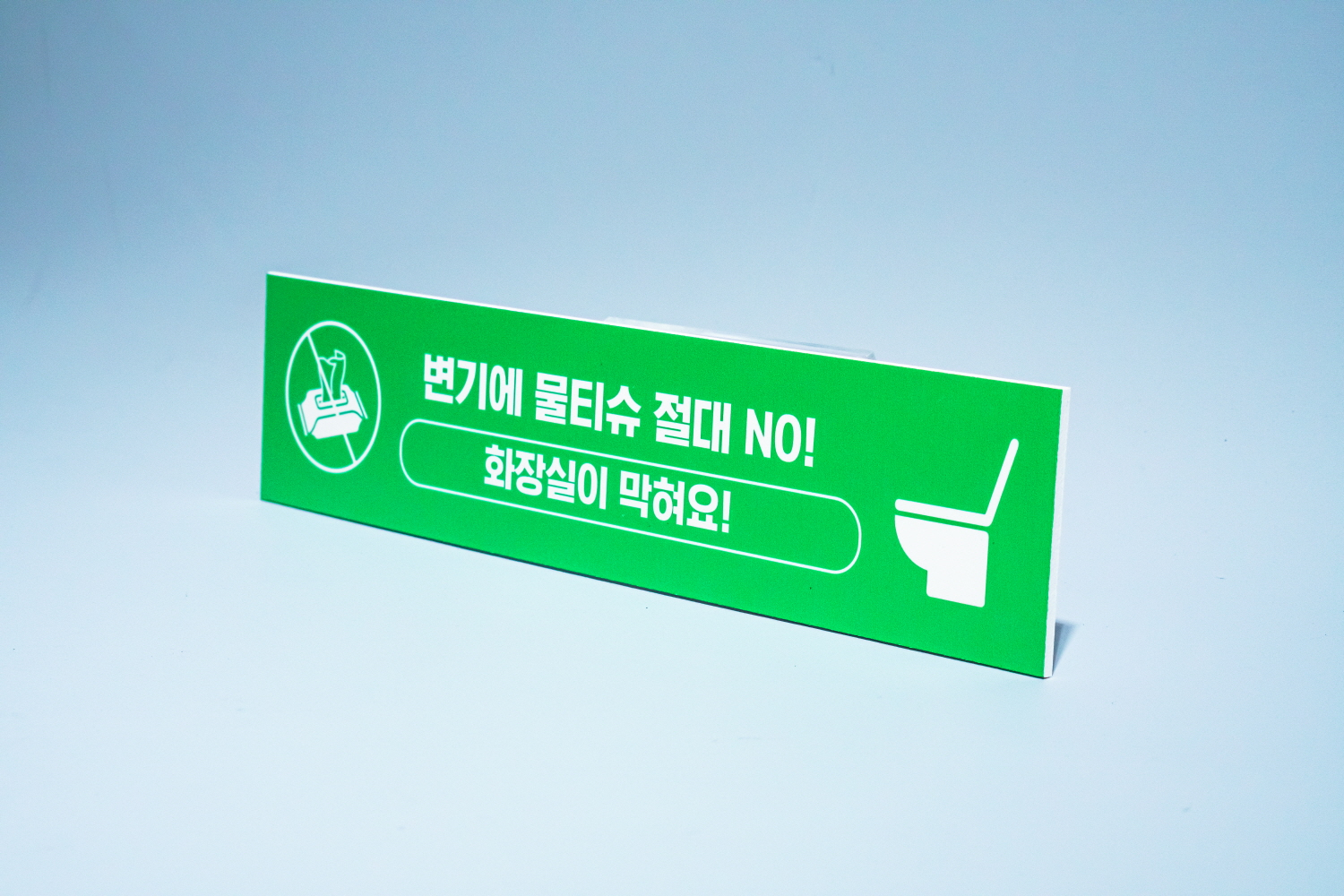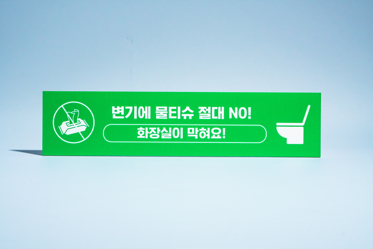 미리 물티슈 사용금지 안내판으로 경고를 알리며 변기 막힘을 예방할 수 있어요 :)