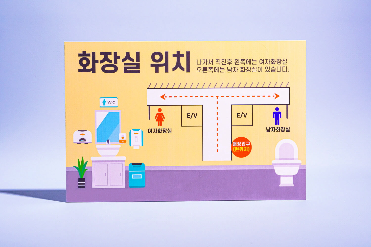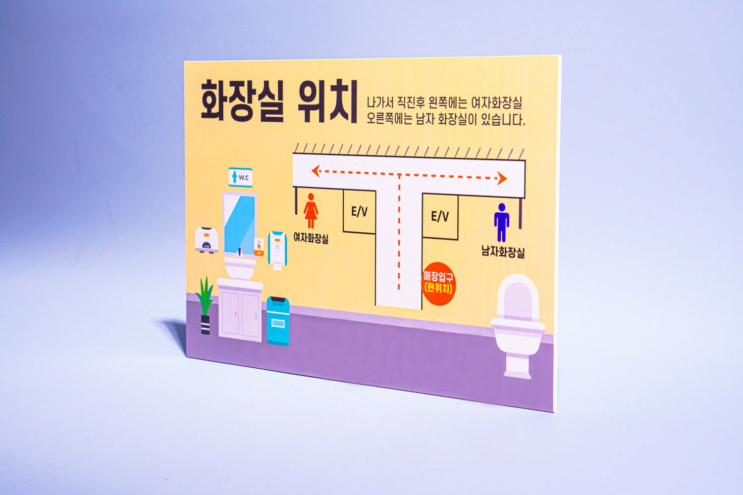 화장실 위치 안내 표지판 은 건물 내 화장실 위치를 쉽게 알려주는 표지판 타입이에요 ~~