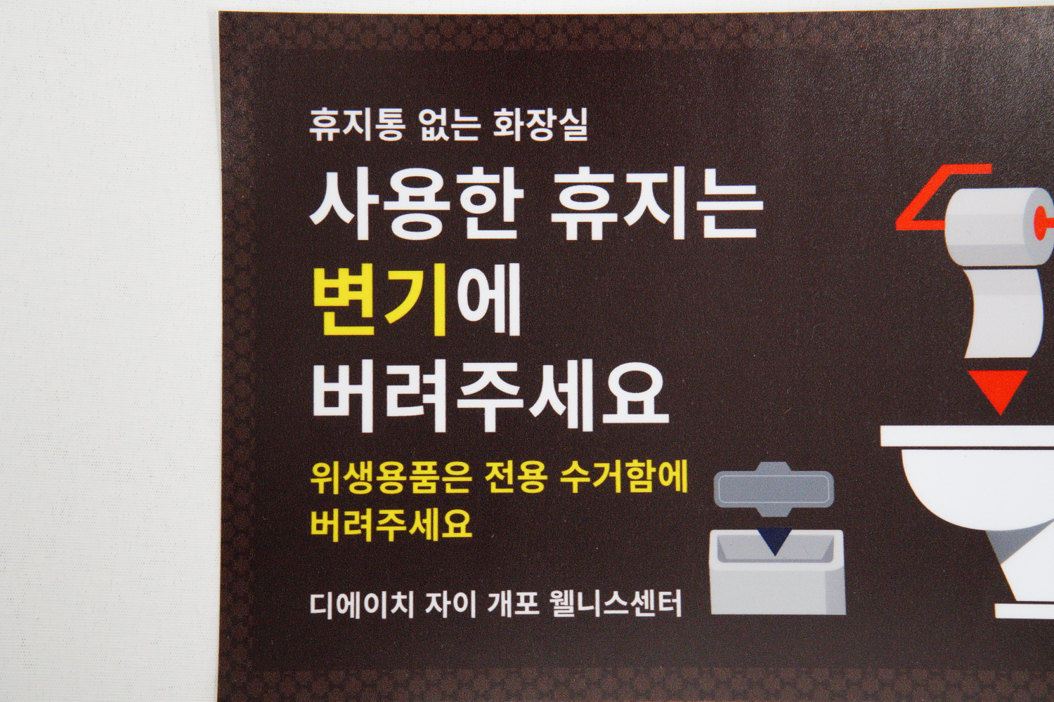 휴지통 없는 화장실 임을 알리는 표지 스티커 타입이에요 !!