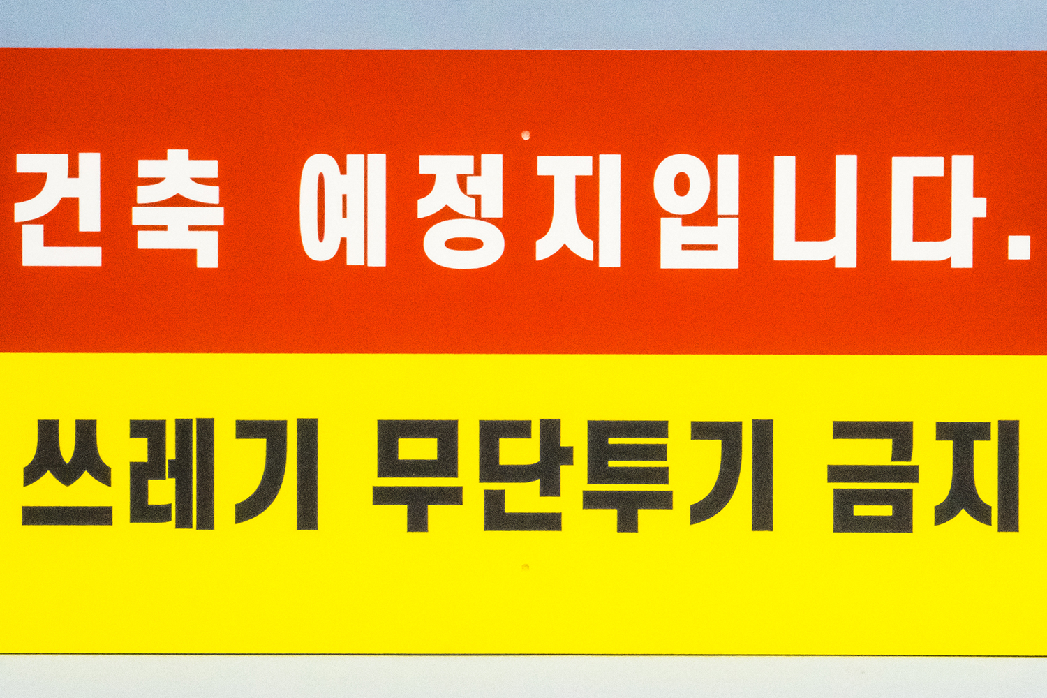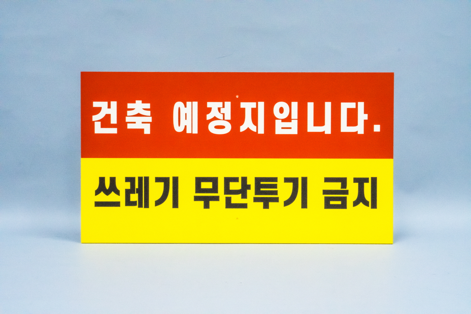 건축 예정지 입니다. 쓰레기 무단투기 금지 매립식 표지판 입니다.