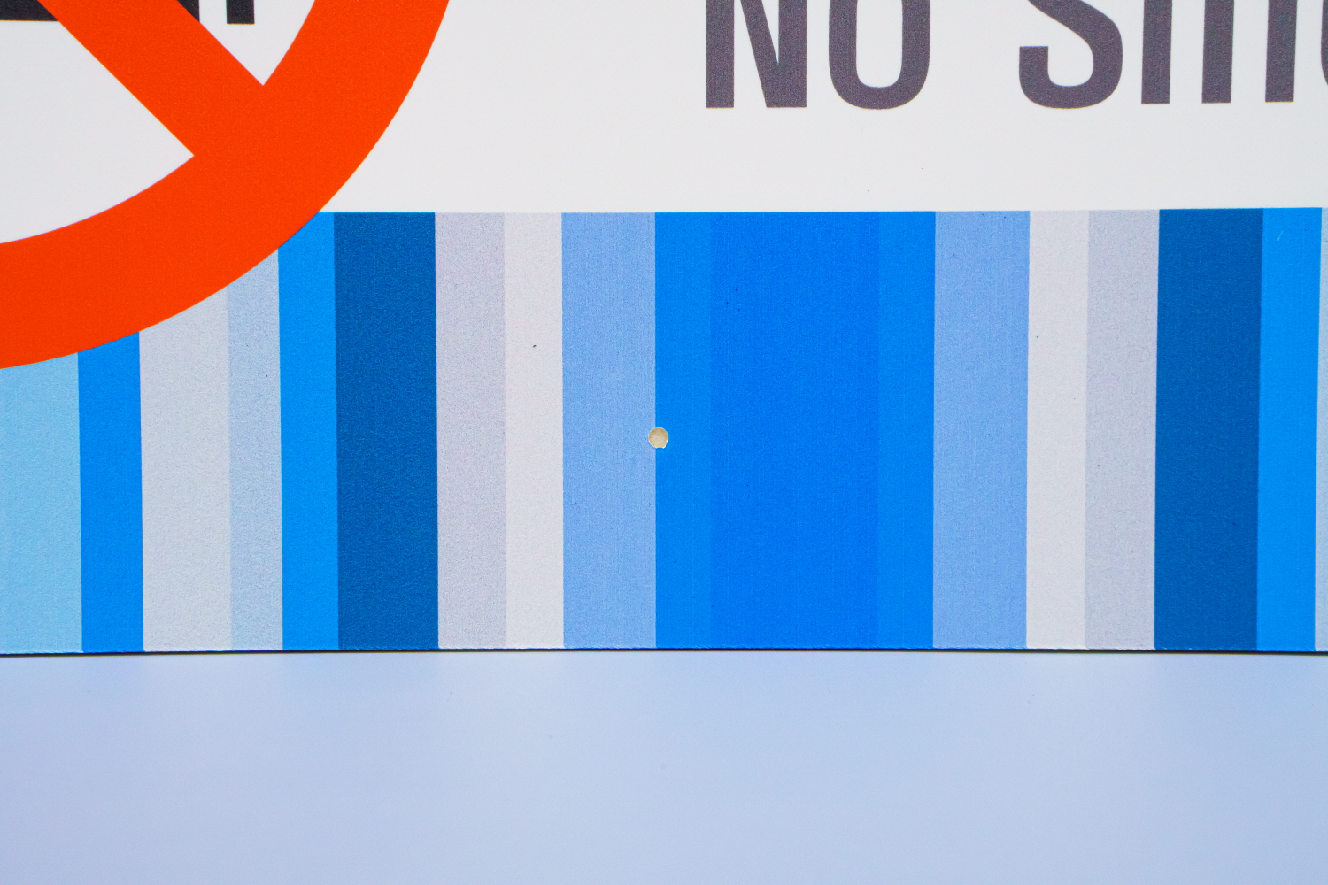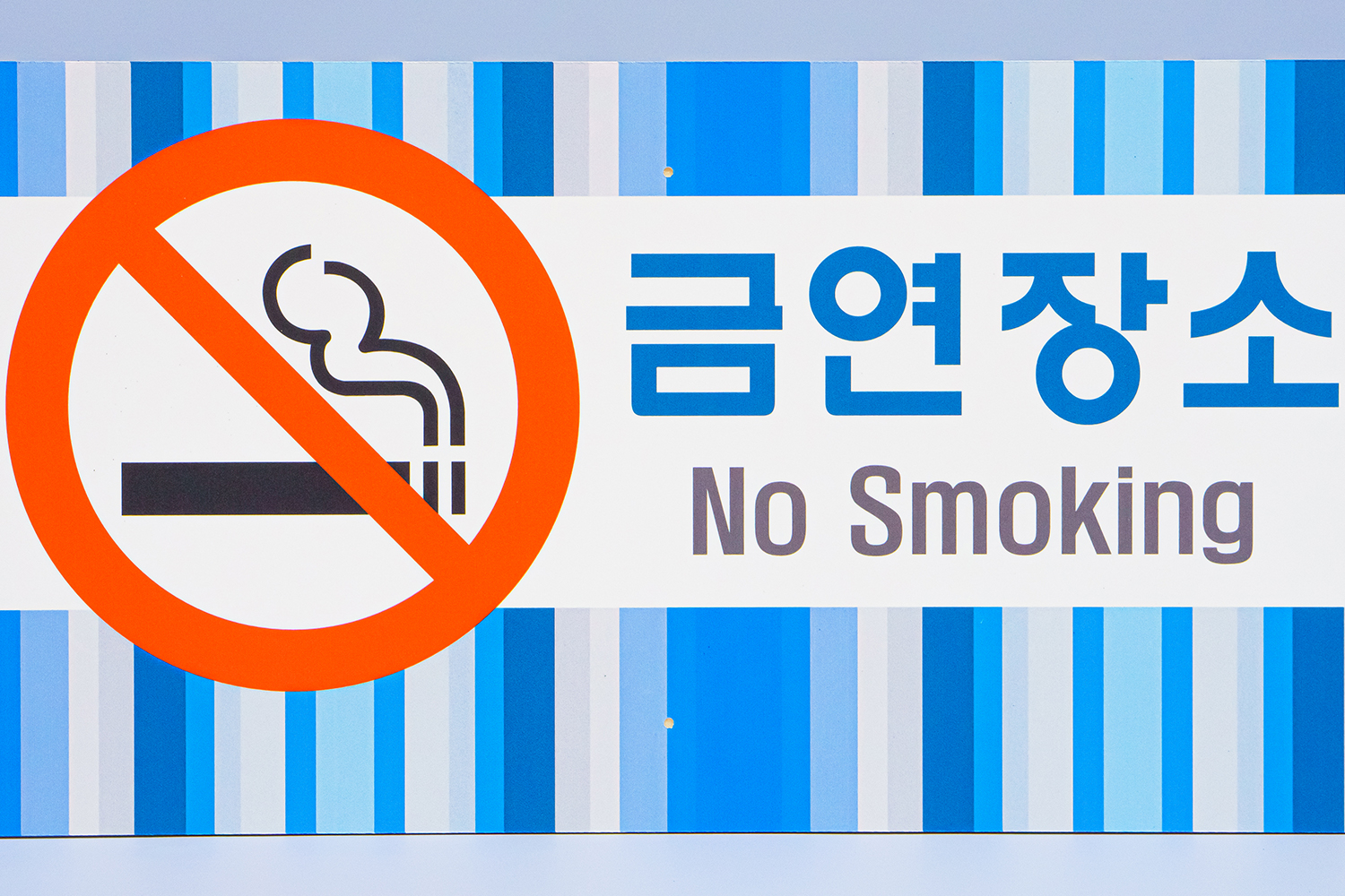 금연구역 말뚝 안내판을 가까이서 촬영한 모습입니다.