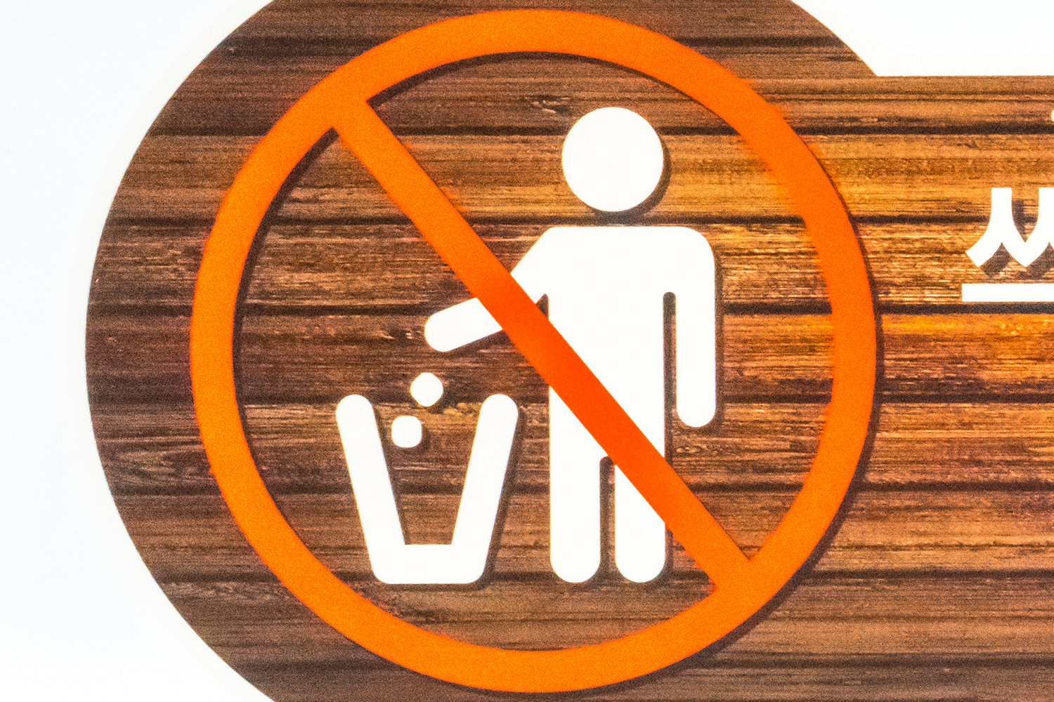 해당 표지판은 쓰레기 무단투기를 금지할 것을 알리는 표지판 입니다.