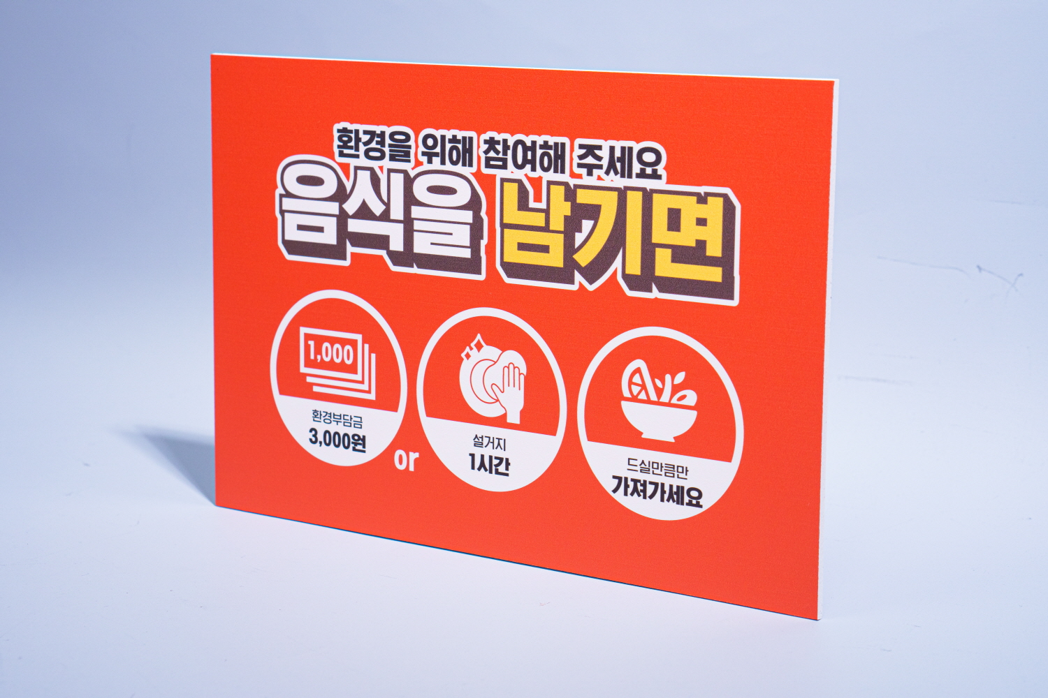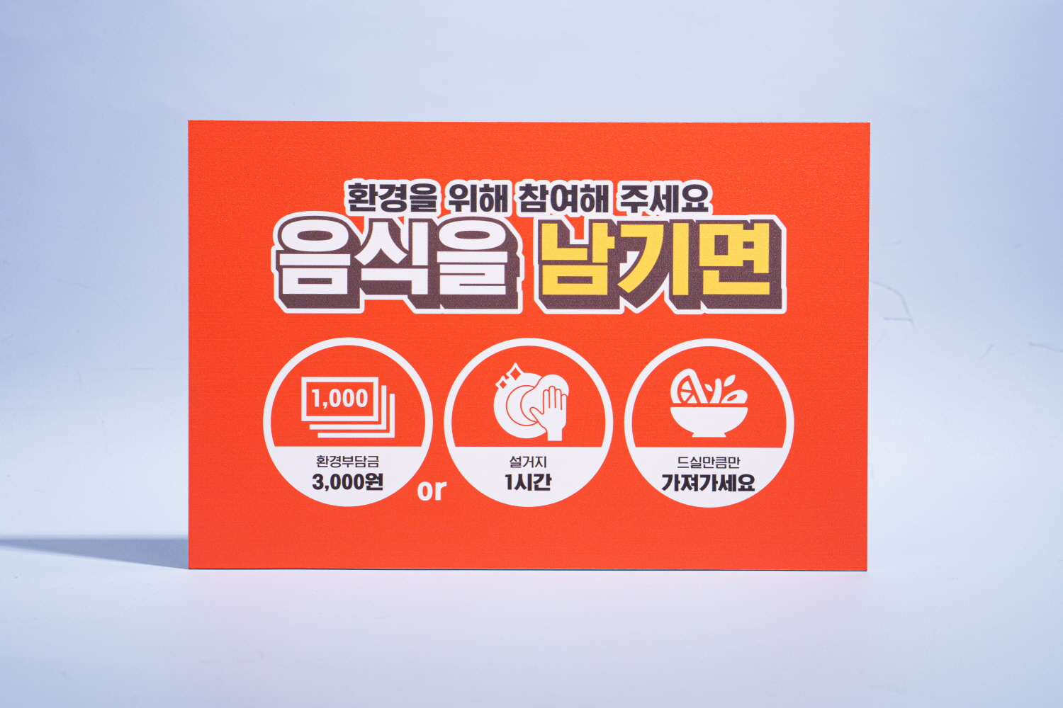 음식을 남길시 환경부담금을 안내 할수 있는 안내판 입니다.