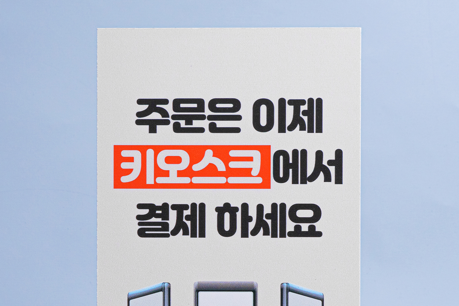 주문은 키오스크 에서 결제 하세요 안내판 입니다.