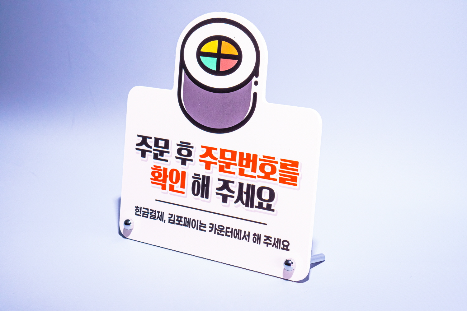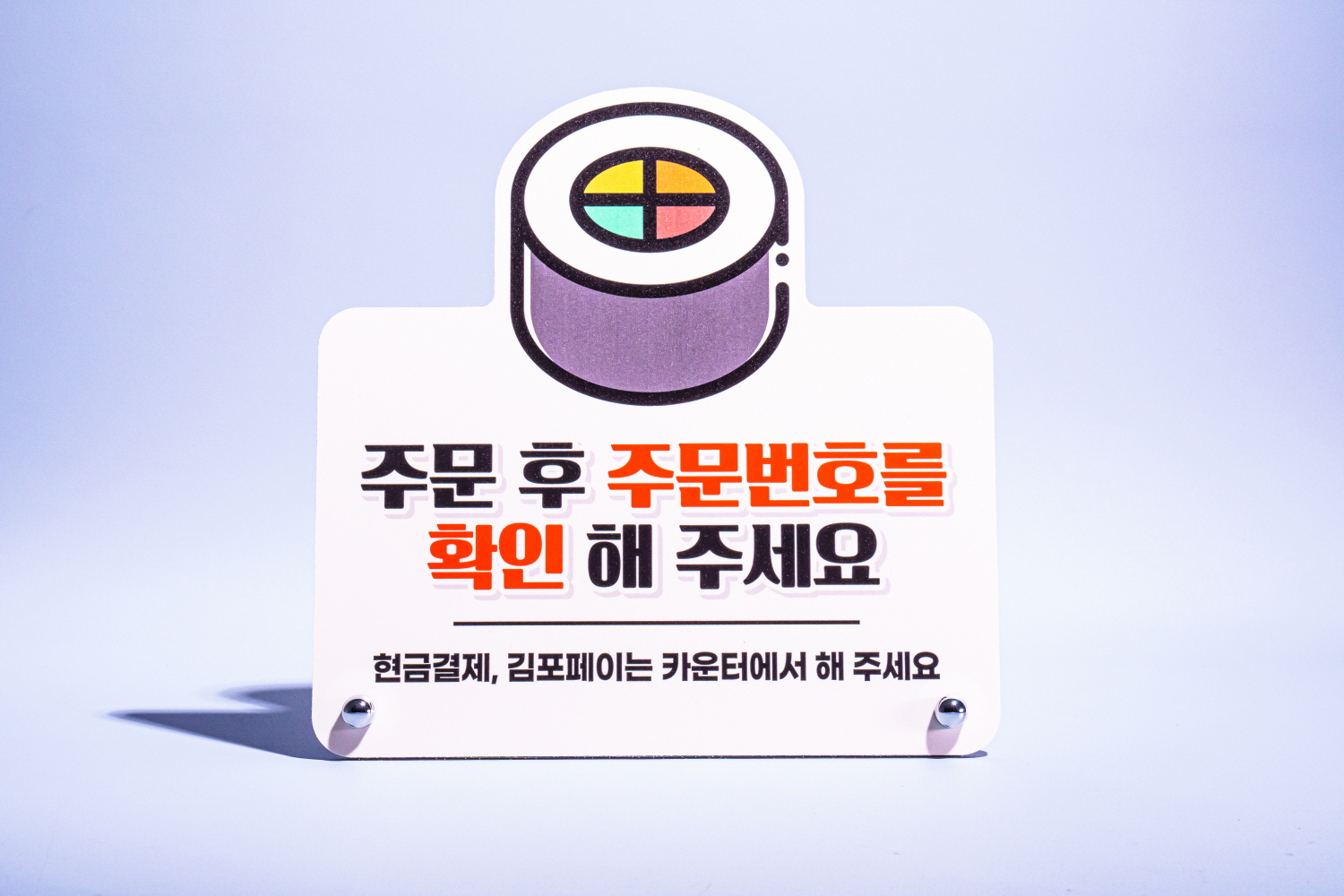 주문번호 확인 표지판은 포맥스 다보 타입으로