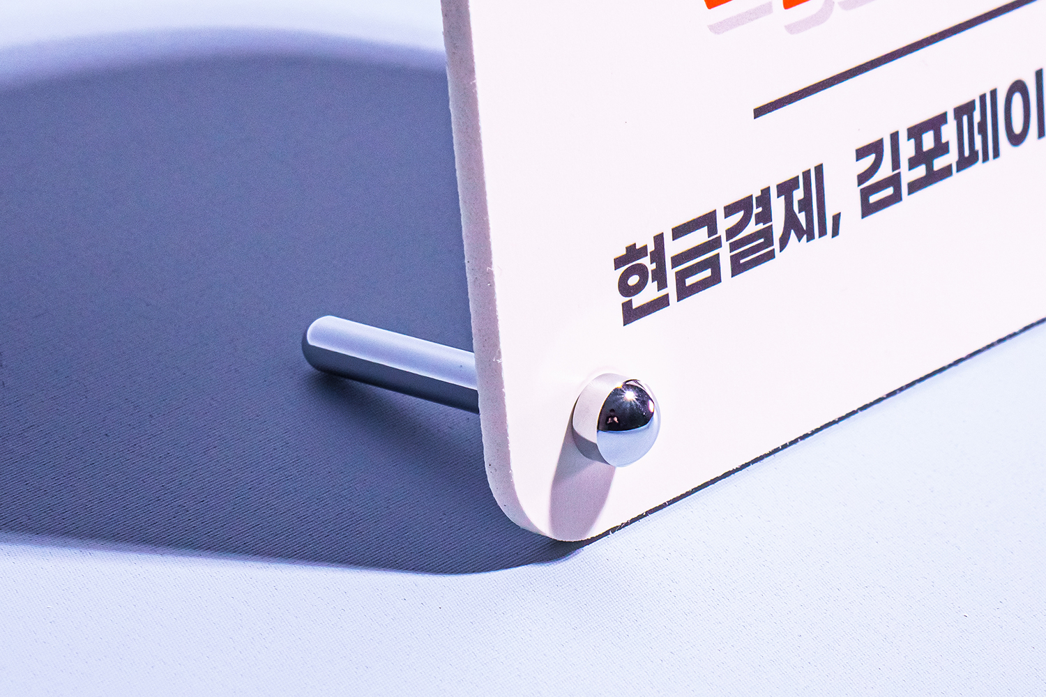 테이블에 두고 사용하는 표지판으로 제작되었습니다.