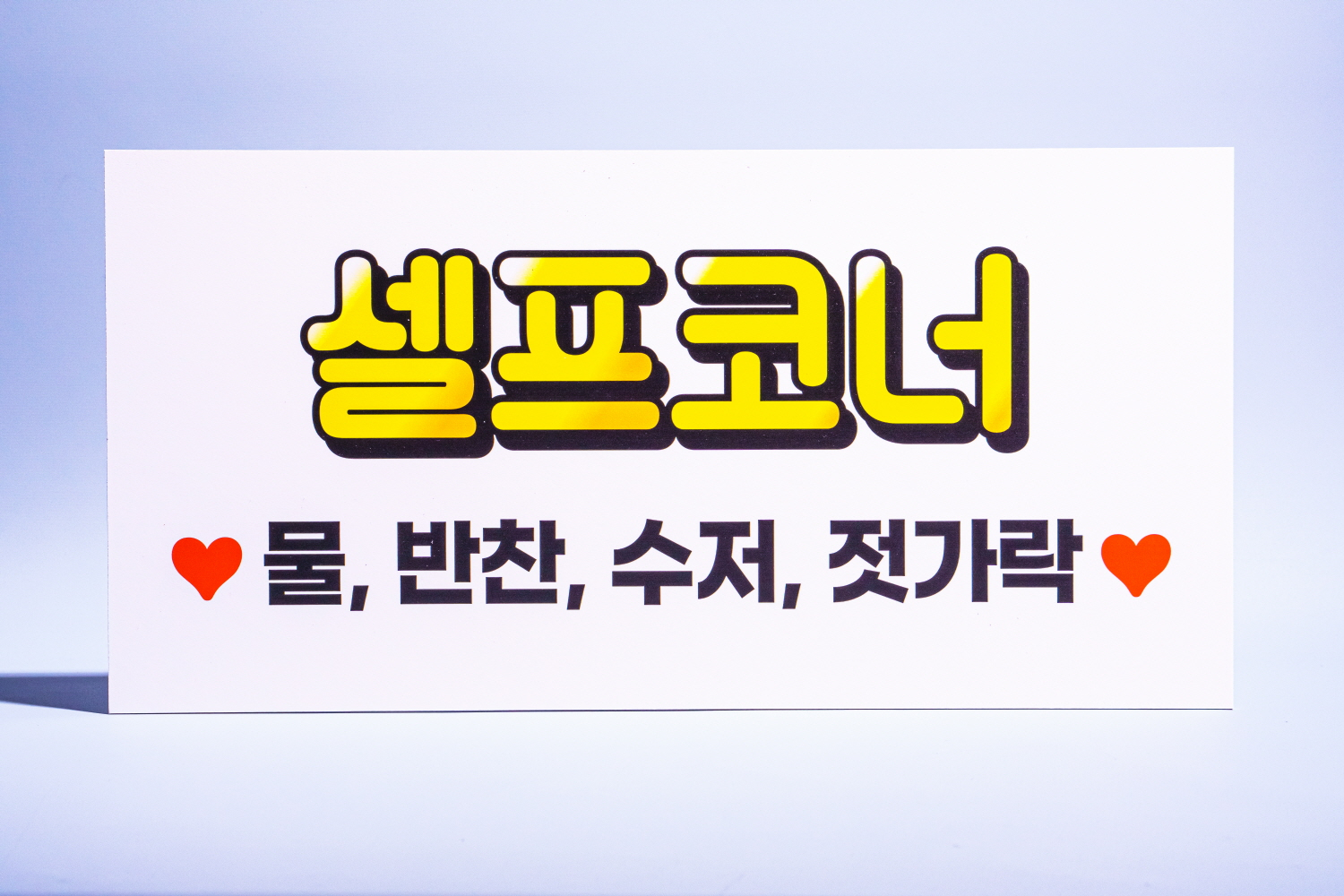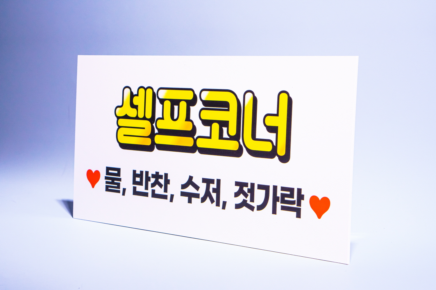 셀프코너 안내판은 상가, 호텔, 회사, 공공기관 등의 식당 시설에서 사용할 수 있는 안내판 입니다.