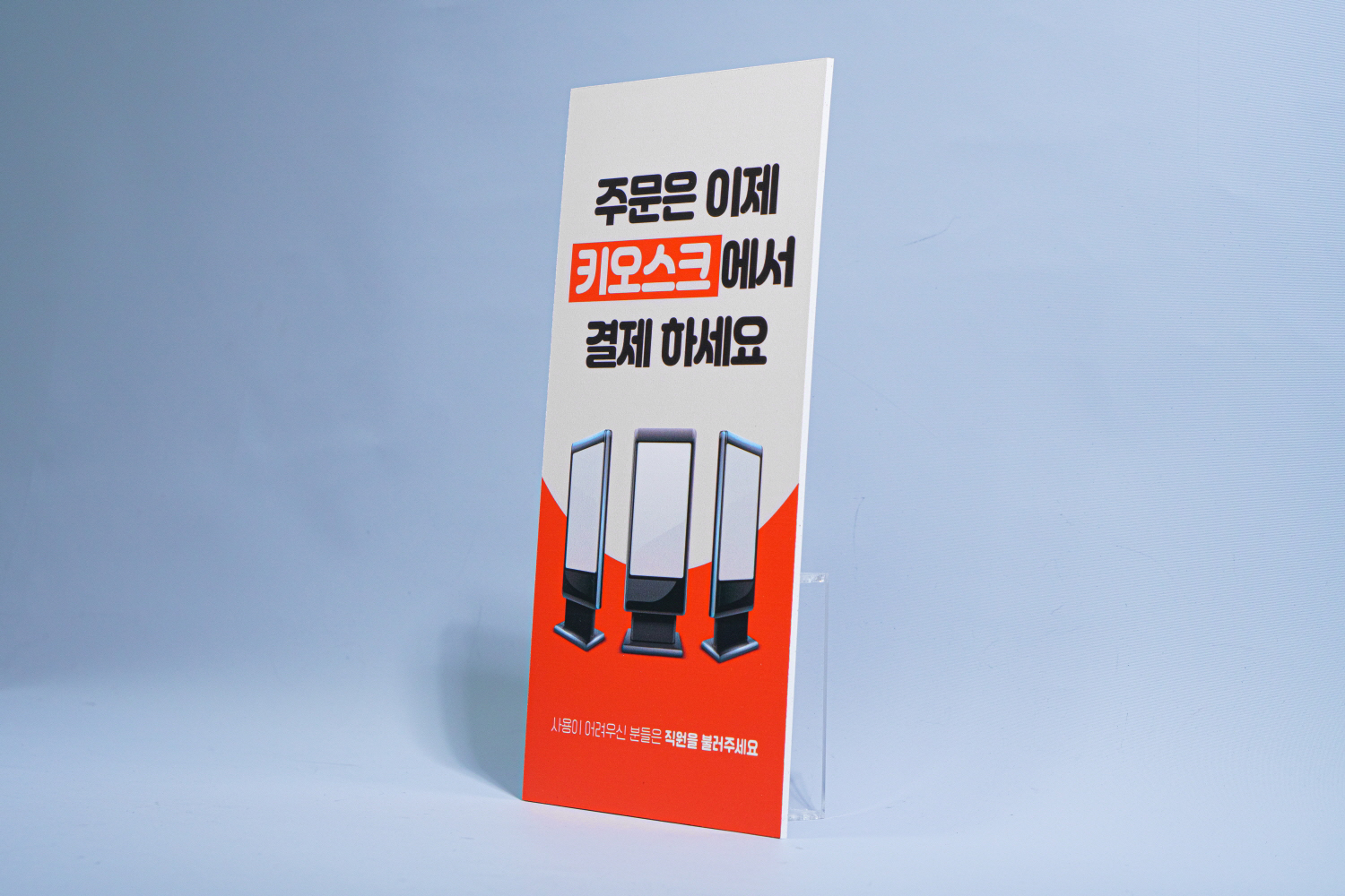 해당 상품들은 식당, 카페 등 음식과 음료를 판매하는 곳에 설치하는 안내판 입니다.