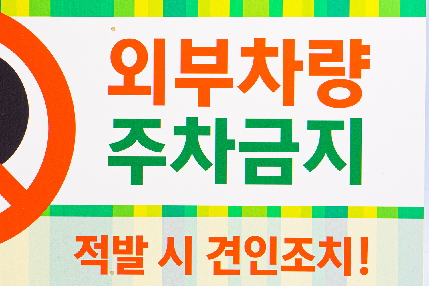 먼저 외부차량 주차금지 말뚝 안내판 입니다.