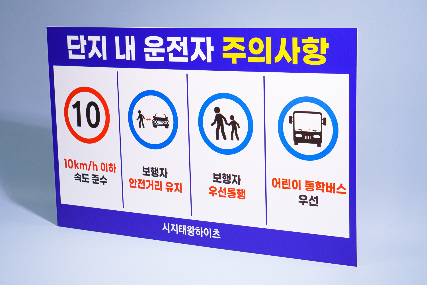 운전자 주의사항 표지판 단지 내 도로 어디에나 부착하여
